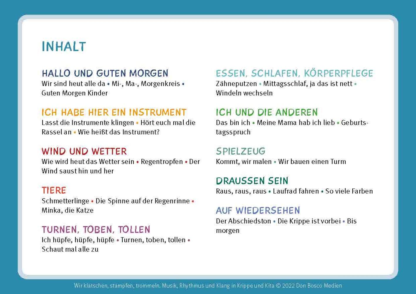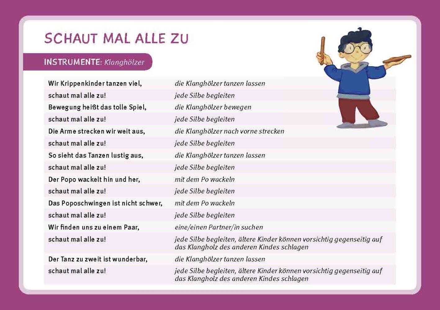 30 Klanggedichte und Mitmachverse als musikalisches Angebot für Krippe, Kindergarten und Eltern-Kind-Gruppen. Für Morgenkreis, Musikstunde oder einfach so! Mitmachverse, die Kinder mit Spaß an Rhythmus und Klang heranführen Ob Zahnputz-Lied, Farben-Reim oder d...