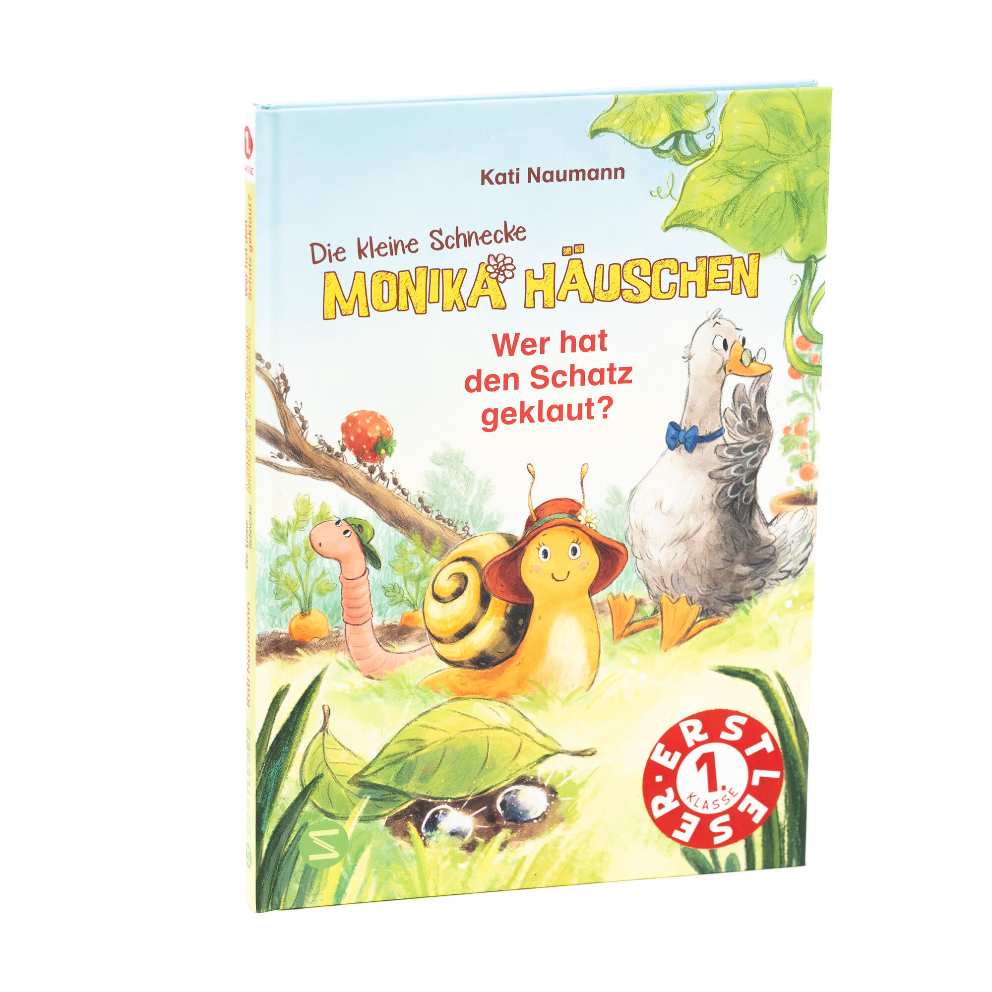 Erstes Lesen mit Monika Häuschen und ihren Freunden Monika, Schorsch und Herr Günter finden im Garten einen waschechten Schatz: einen Kiesel, an dem Goldglimmer und Kristalle glitzern. Doch kaum lassen sie das Fundstück kurz aus den Augen, ist es verschwunden...