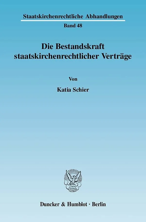 Der Abschluß von Staatskirchenverträgen ist ein traditionelles Mittel zur Ordnung der Beziehungen von Staat und Kirche. Dennoch stellt sich bis heute oft die Frage, wie weit die Parteien durch die Verträge gebunden werden, und ob sie frei sind, sie zu kündigen oder auch einseitig abzubedingen. Zur Klärung dieser Frage zeichnet Katia Schier zunächst die historische Entwicklung des Staatskirchenvertragsrechts nach. Anschließend behandelt sie die Frage nach der Rechtsnatur der Verträge. Bei den Konkordaten handelt es sich um völkerrechtliche Verträge. Die evangelischen Kirchenverträge hingegen bilden eine Vertragsart sui generis im innerstaatlichen Recht. Dies hat auch Auswirkungen auf die Bestandskraft der Verträge. Eine ordentliche Kündigung der Staatskirchenverträge ist mangels Vereinbarung nicht möglich. Anders verhält es sich bei wesentlicher Änderung der Umstände - hier greifen die Grundsätze der clausula rebus sic stantibus. Die Bestandskraft hinsichtlich entgegenstehender Gesetzgebung ist differenziert zu betrachten: Da es sich bei den Konkordaten um völkerrechtliche Verträge handelt, ist eine Aufhebung des Vertrages selbst durch Gesetz nicht möglich, wohl aber eine Aufhebung des Zustimmungsgesetzes. Bei den evangelischen Kirchenverträgen scheidet eine Aufhebung des Vertrages durch Gesetz ebenfalls aus. Die Aufhebung des Zustimmungsgesetzes wiederum müßte aufgrund der innerstaatlichen Rechtsnatur des Vertrages zu einem Widerspruch in der Rechtsordnung führen und wird daher durch das Rechtsstaatsprinzip ausgeschlossen. Die Untersuchung endet mit einem Vergleich mit der Rechtslage in Spanien.
