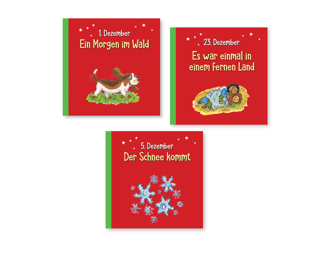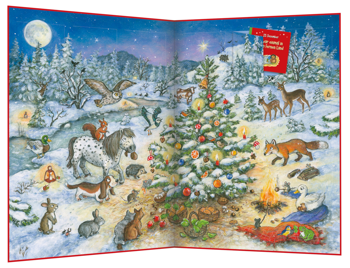 Ein Adventskalender mit 24 Büchern für Kinder ab 4 Jahren - 24 mal Büchlein entdecken und Vorlesen: Die Hündin Rosina hört ein geheimnisvolles Glöckchen läuten und macht sich gemeinsam mit ihrem besten Freund, dem Eichhörnchen Moritz auf die Suche nach dem wun...