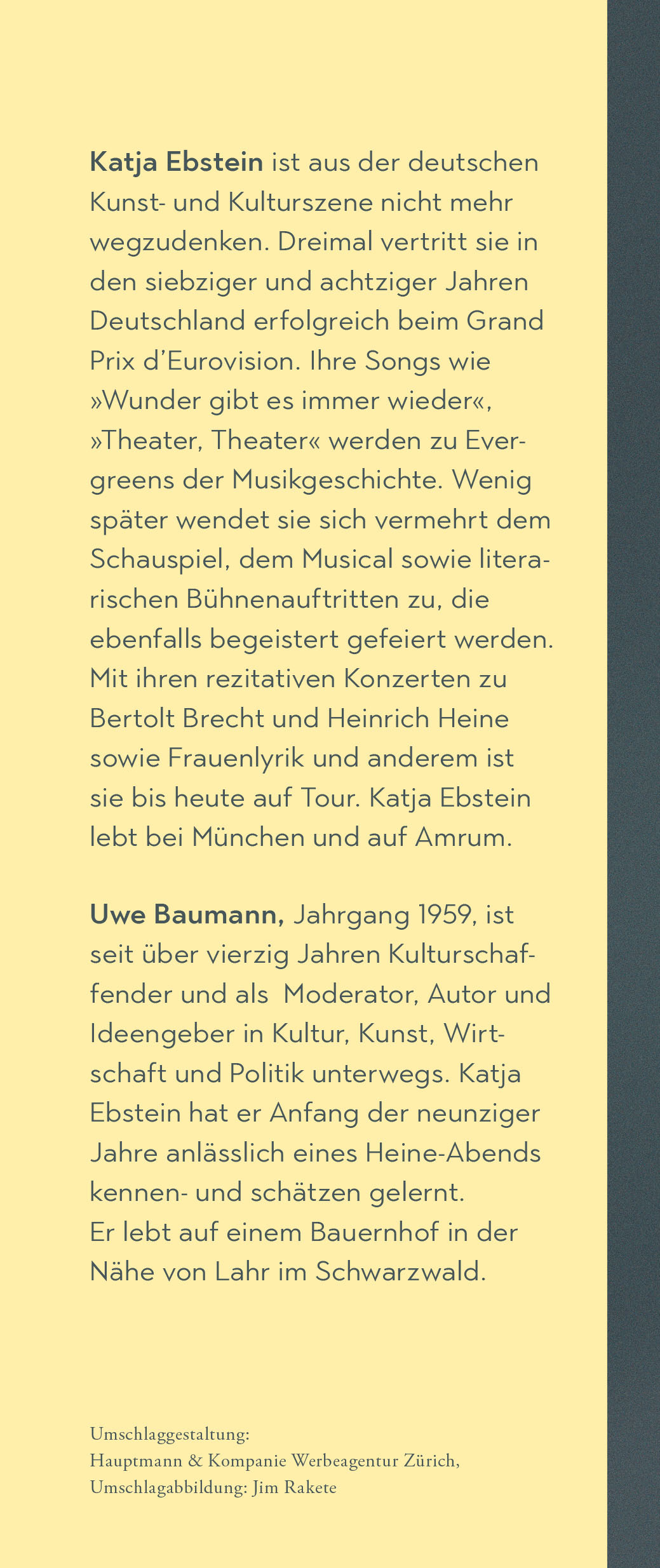 Gute Begegnungen sind Lebenselixier. Sie sind Balsam für die Seele, Futter für Herz, Kopf und Verstand. Katja Ebstein erzählt zum ersten Mal von den bedeutenden Stationen ihres Lebens und den Begegnungen, die sie geprägt haben. Sie erzählt, wie ihre Eltern ih...