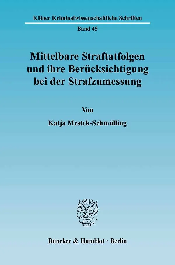 Katja Mestek-Schmülling behandelt die Problematik einer strafmildernden Berücksichtigung mittelbarer Straftatfolgen bei der Strafzumessung. Sie setzt sich mit den seitens der höchstrichterlichen Rechtsprechung und dem Schrifttum kontrovers diskutierten Fragen ...