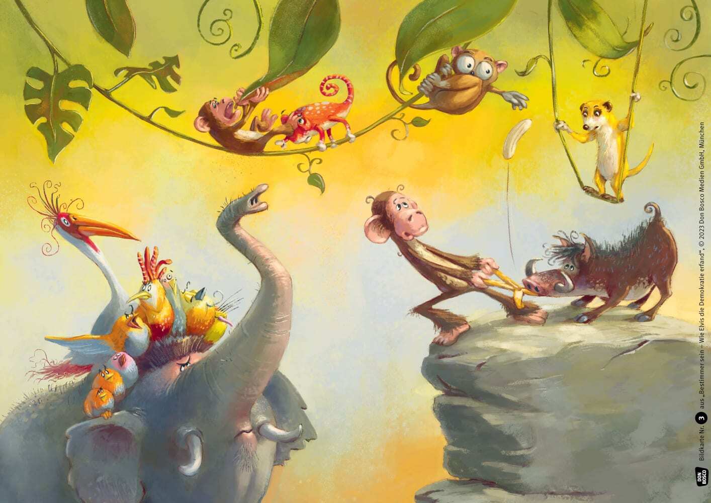 Tiergeschichte über Mitbestimmung im Urwald. Wie funktioniert Partizipation? Eine Bilderbuchgeschichte für Kinder ab 4, für den Einsatz in Kita & Schule Mitbestimmung im Dschungel: Eine Geschichte über Demokratie für das Erzähltheater Wer hat die Kokosnuss...