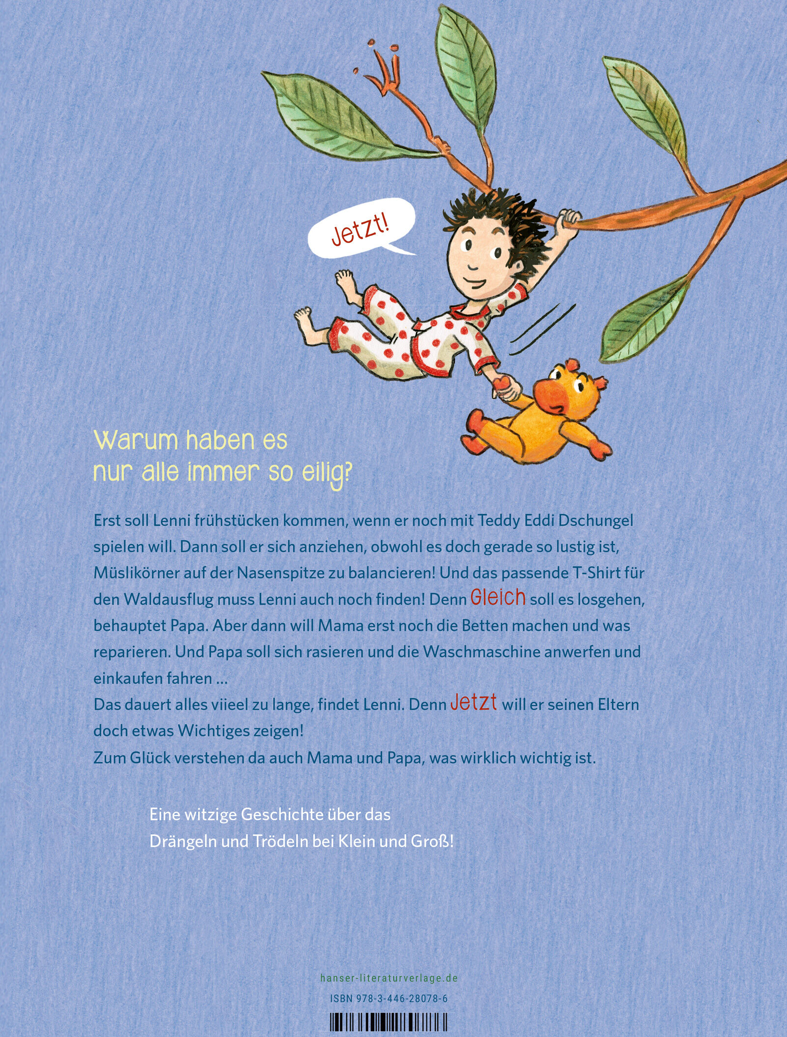 GLEICH? Nein, JETZT! Vom Drängeln und Trödeln bei Klein und Groß eine alltagsnahe Geschichte mit augenzwinkernden Illustrationen für die ganze Familie Warum haben es nur alle immer so eilig? Wenn Lenni morgens noch ein bisschen mit Teddy Eddi Dschungel spielen...