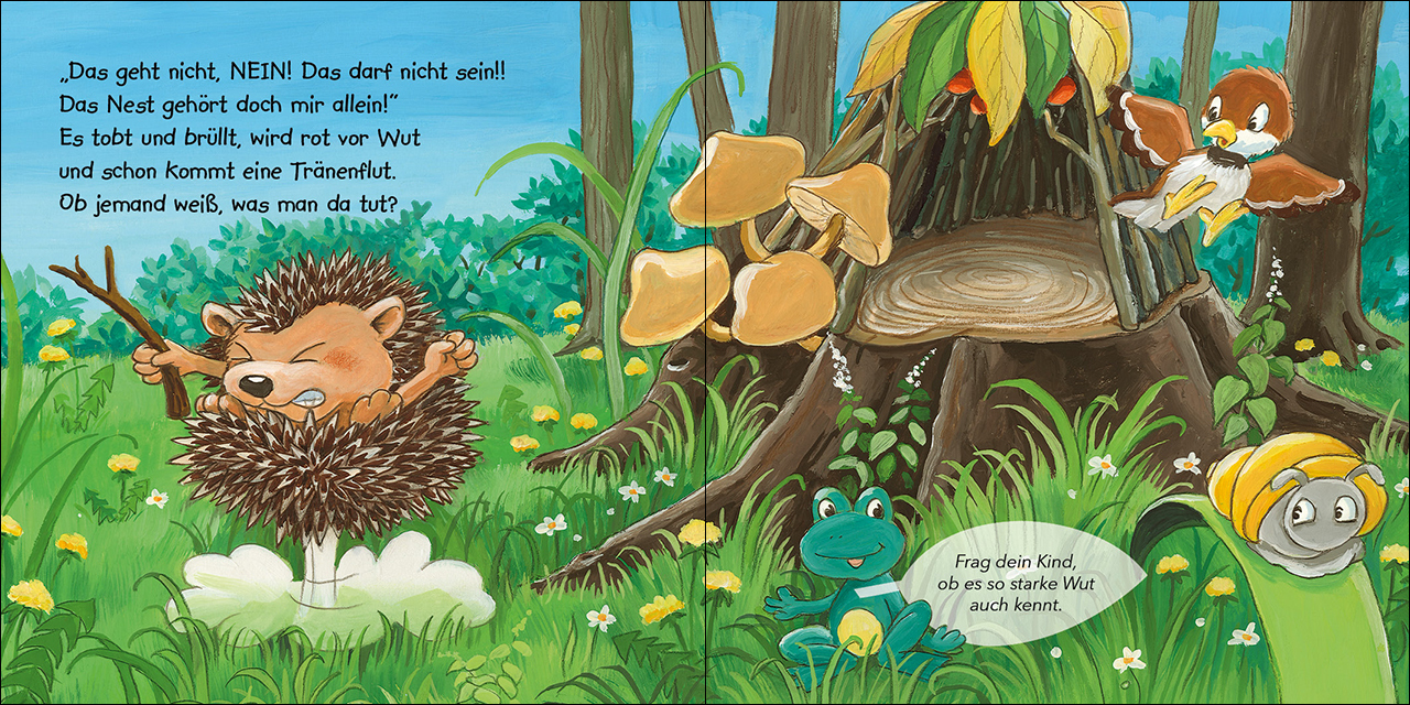 Der kleine Igel ist furchtbar wütend! Der Spatz hat sich einfach in sein Häuschen gesetzt, dabei gehört das doch nur dem Igel allein! Er tobt und weint vor lauter Wut. Zum Glück haben die anderen Tiere eine Idee, wie sie ihm helfen können. Eine liebevolle Gesc...