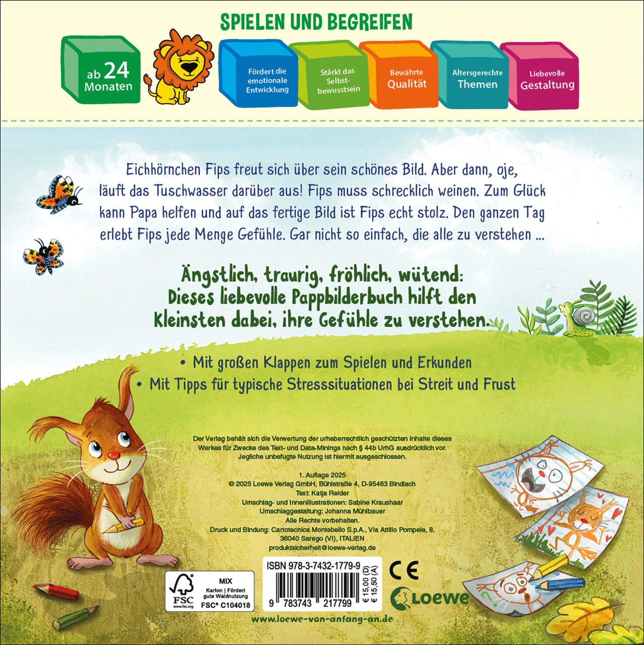 So fühle ich mich! Eichhörnchen Fips freut sich. Er hat so ein schönes Bild gemalt. Aber kurz nicht aufgepasst und das Tuschwasser läuft darüber aus! Fips muss schrecklich weinen. Zum Glück kann Papa ihn trösten. Und als Mama das Bild aufhängt, ist Fips richt...