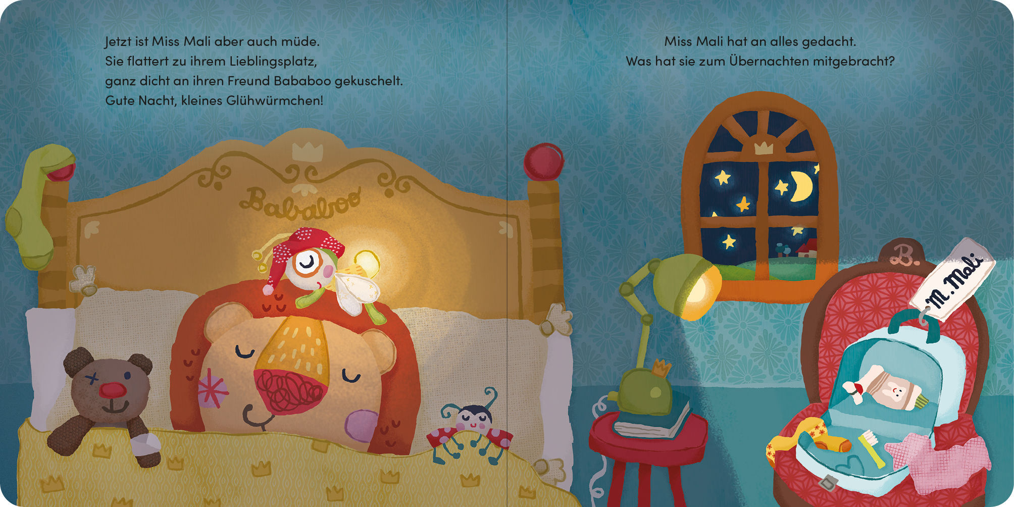 So gemütlich ist die Zu-Bett-geh-Zeit mit Bababoo! Ein Pappbilderbuch zum Kuschen und Vorlesen Zeit zum Schlafengehen! Doch vorher will das Glühwürmchen Miss Mali noch unbedingt dem kleinen Löwen Bababoo und all ihren anderen Freunden Gute Nacht sagen. Sie dec...