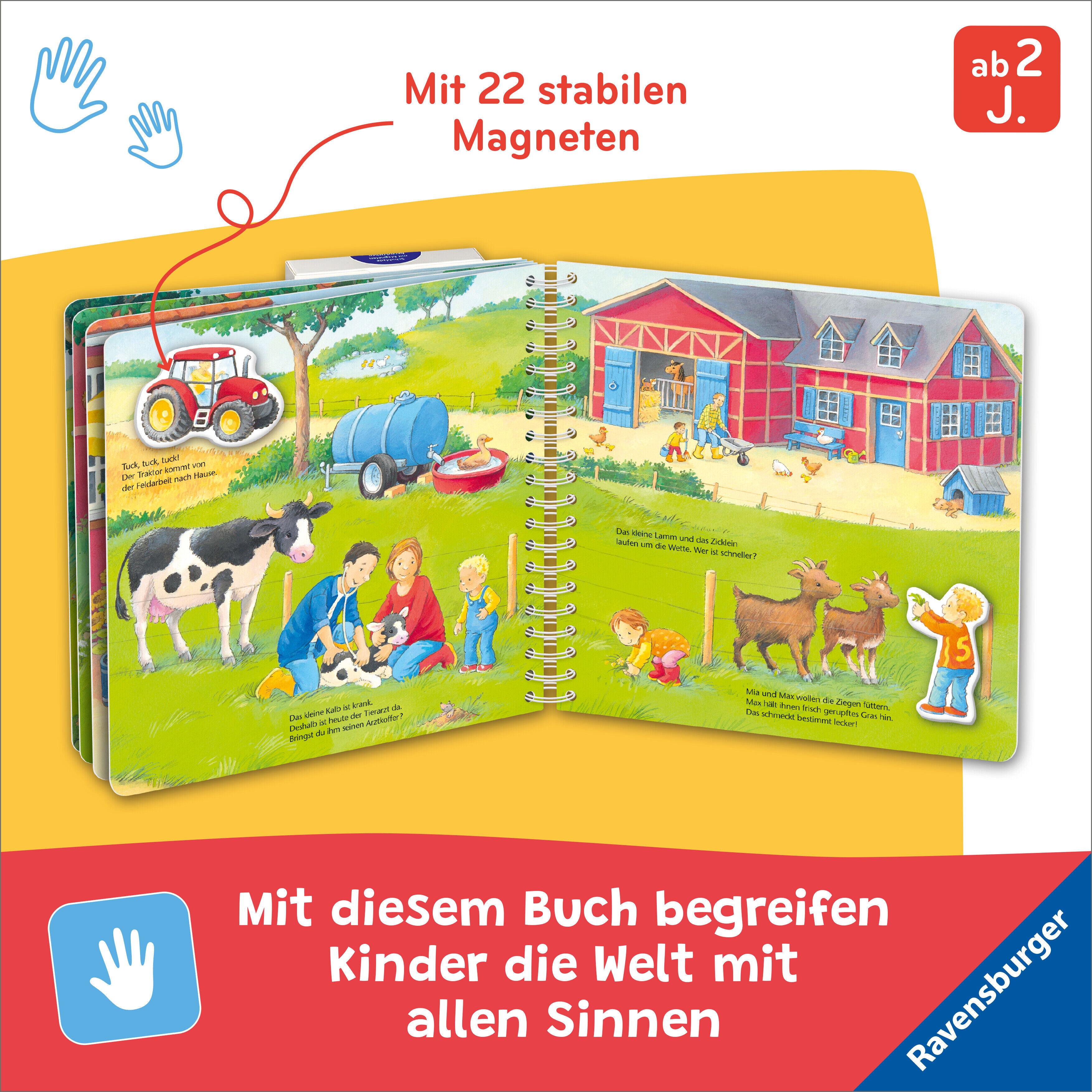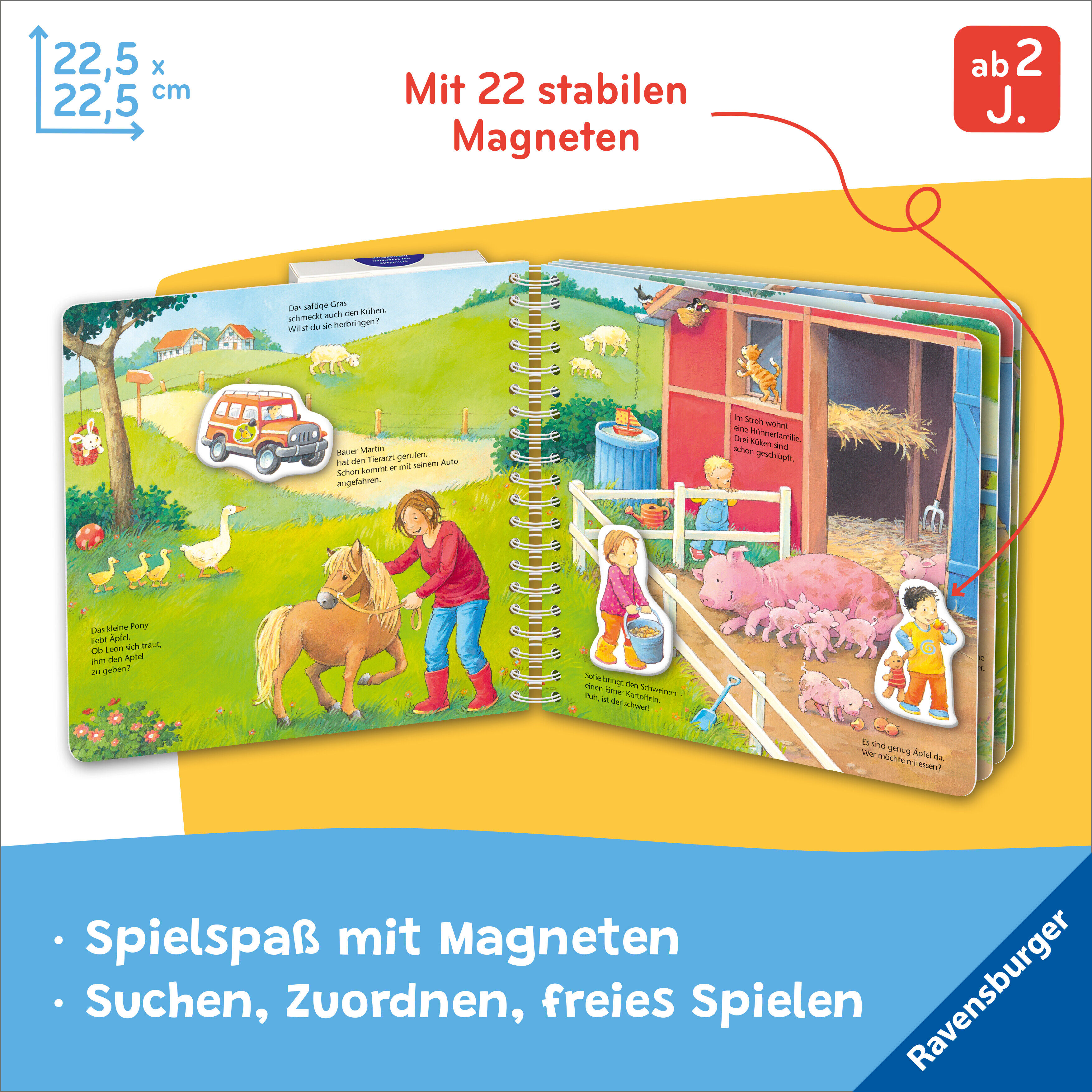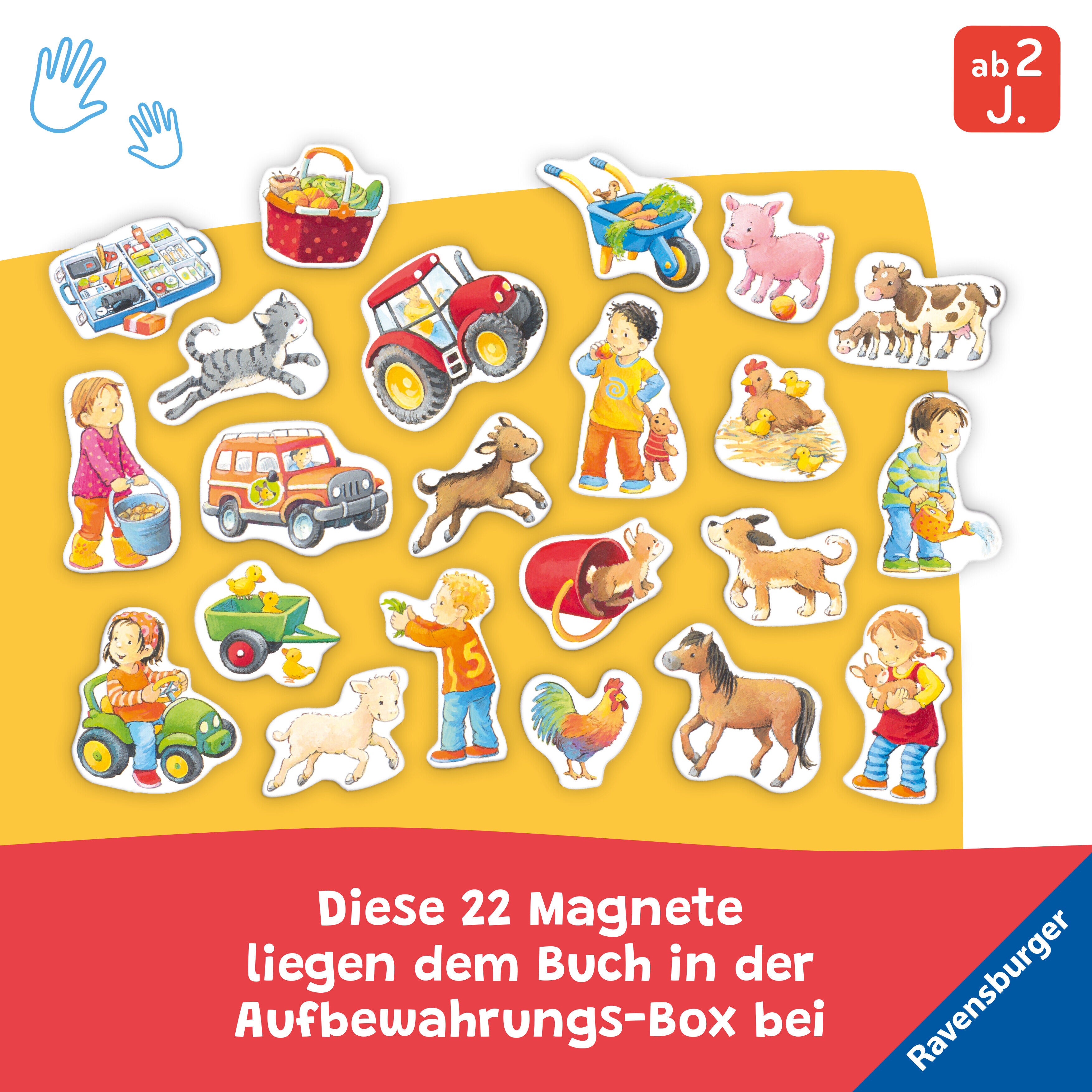 Wer füttert die Schweine, wo wohnen die Hasen und warum ist der Tierarzt auf dem Bauernhof? Aus 22 Magneten können Kinder ab 2 Jahren die passenden Tiere, Fahrzeuge und Dinge für die unterschiedlichen Bauernhof-Szenen auswählen. Kurze Texte geben den Kindern T...