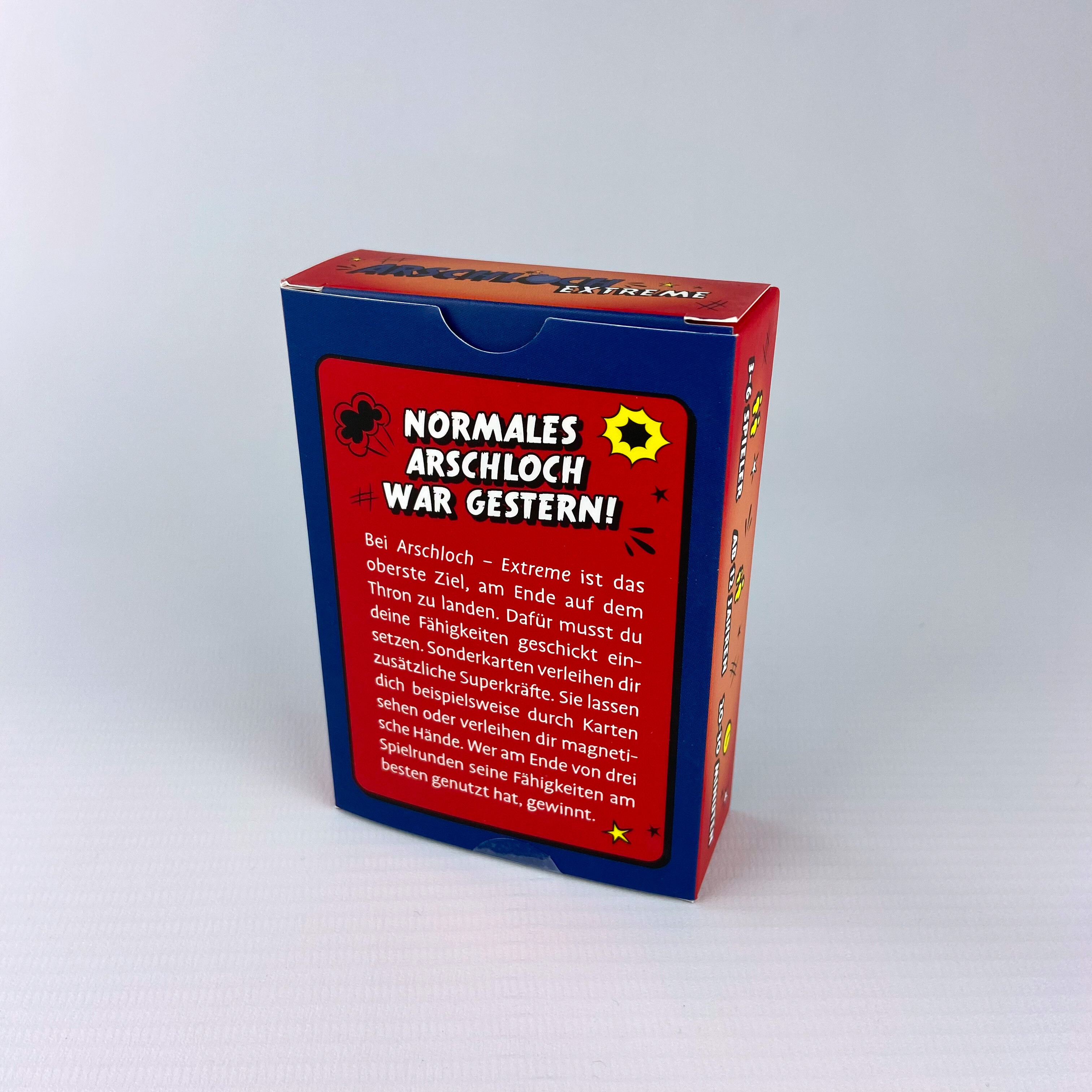 Arschloch Extreme - Mit Sonderkarten für noch mehr Nervenkitzel Normales Arschloch war gestern! In dieser neuen Variante geht es darum, möglichst fiese Taten zu begehen, um sich einen Vorteil zu verschaffen und am Schluss auf dem Thron zu landen. Sonderkarten ...
