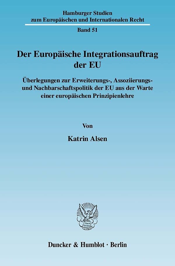 Karin Alsen begründet und konkretisiert einen rechtlich determinierten Integrationsauftrag der EU gegenüber europäischen Staaten. Vor dem Hintergrund der aktuellen Konstitutionalisierungsdebatte werden die »Erweiterung« und die »Vertiefung« der EU als Rechtspr...