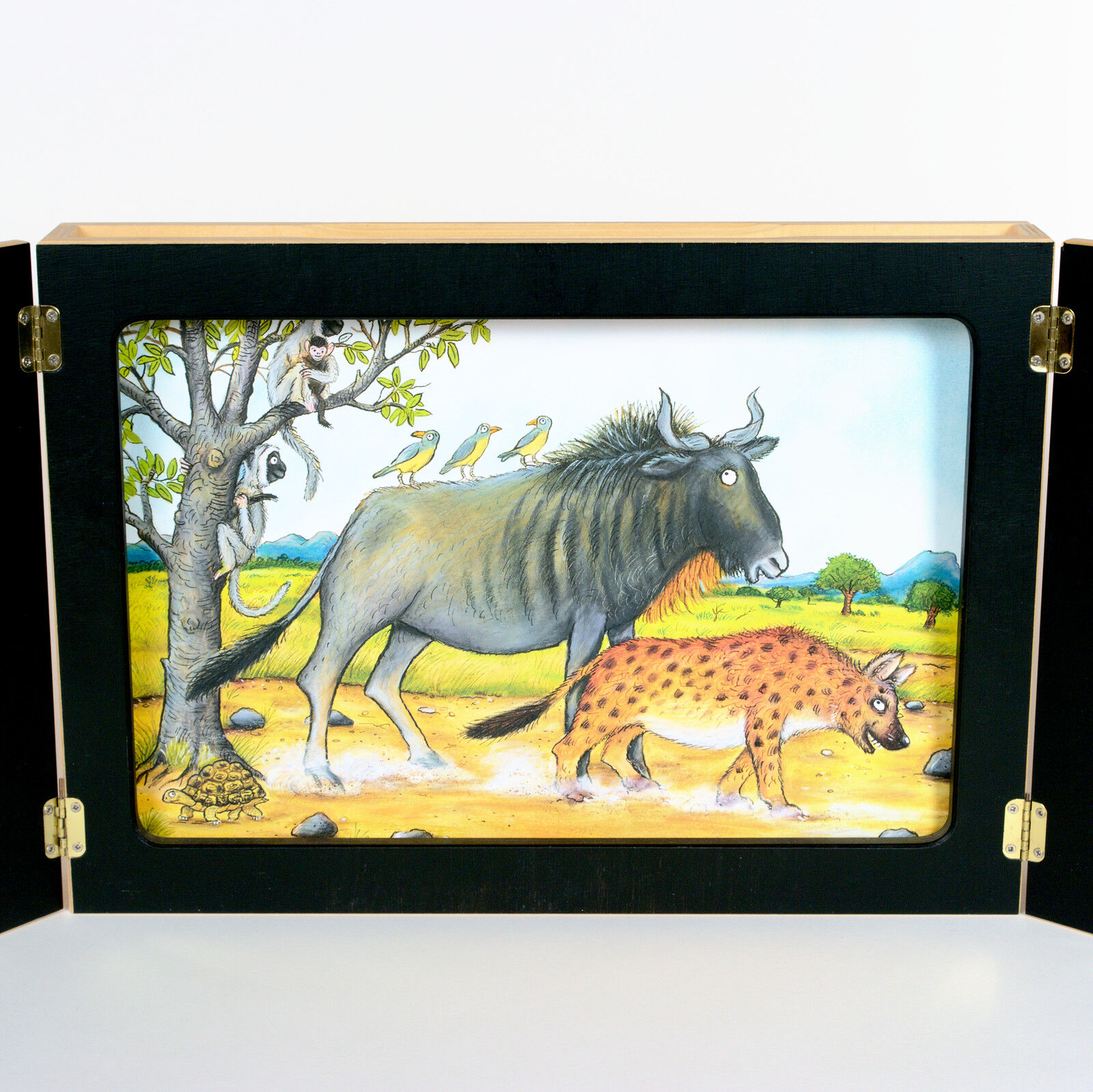 »Die hässlichen Fünf« als Bilderbuchkarten für das Kamishibai im Kindergarten und in der Grundschule: Eine tierische Geschichte über Wertschätzung und Vielfalt mit farbenfrohen Illustrationen von Axel Scheffler und wunderbaren Reimen von Julia Donaldson. Spiel...