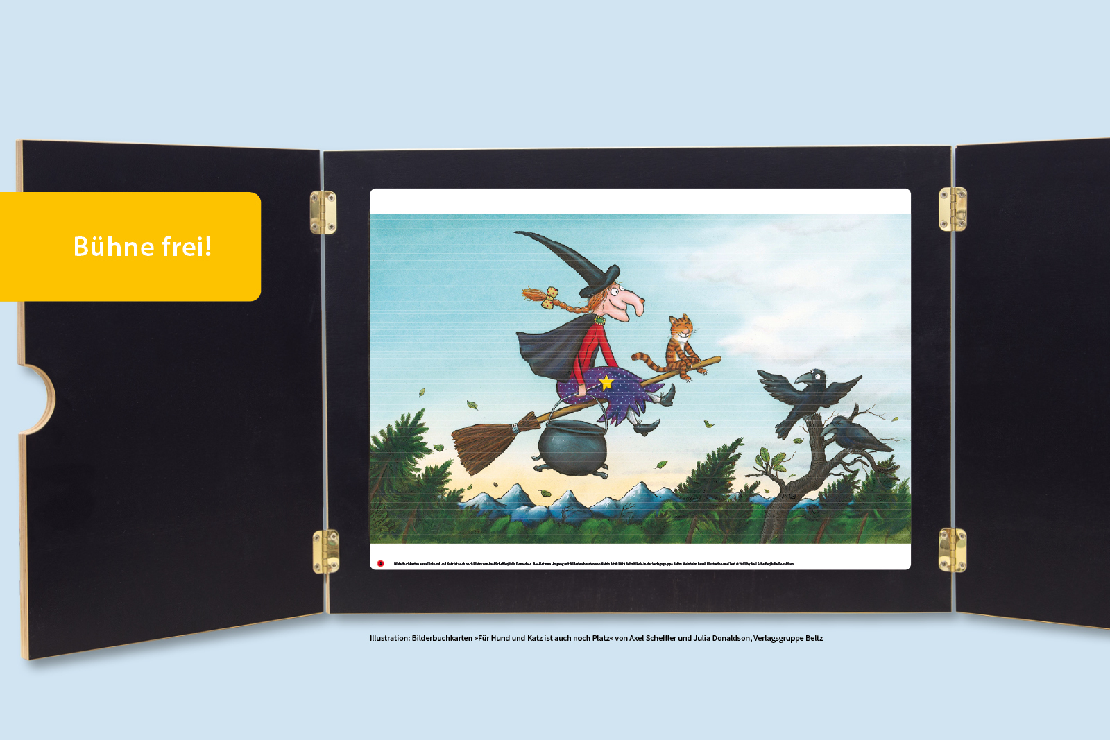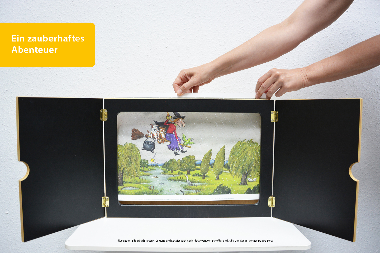 Mit dem Kamishibai-Theater können Sie und Ihre Kita-Kinder die beliebte Geschichte der reiselustigen Hexe und ihrer mutigen Tierfreunde lebendig werden lassen. Findet die Hexe ihre verlorenen Habseligkeiten wieder? Übersteht der Besen das heftige Gewitter und ...