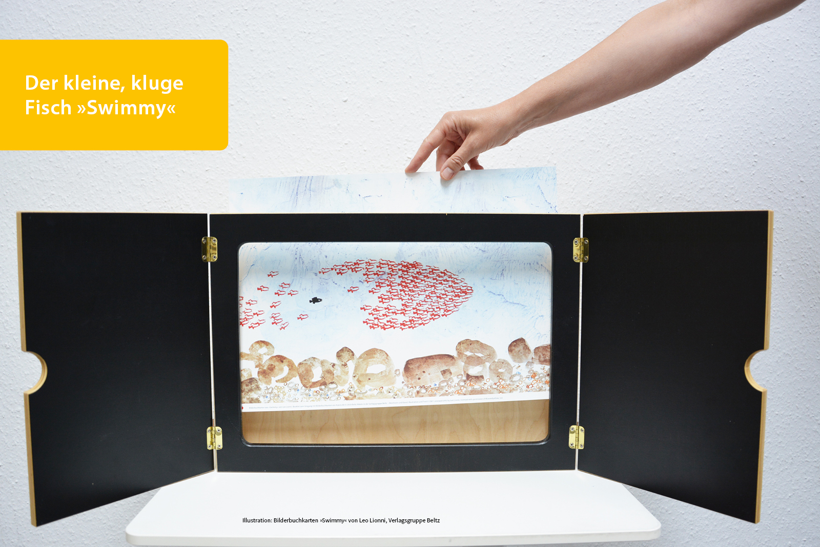 Den Klassiker von Leo Lionni über den kleinen, klugen Fisch »Swimmy« können Frühpädagog_innen jetzt gemeinsam mit ihrer Kindergruppe im Erzähltheater erleben. Die großformatigen Bilderbuchkarten ermöglichen ihnen und den Kindern eine besonders sinnliche und äs...