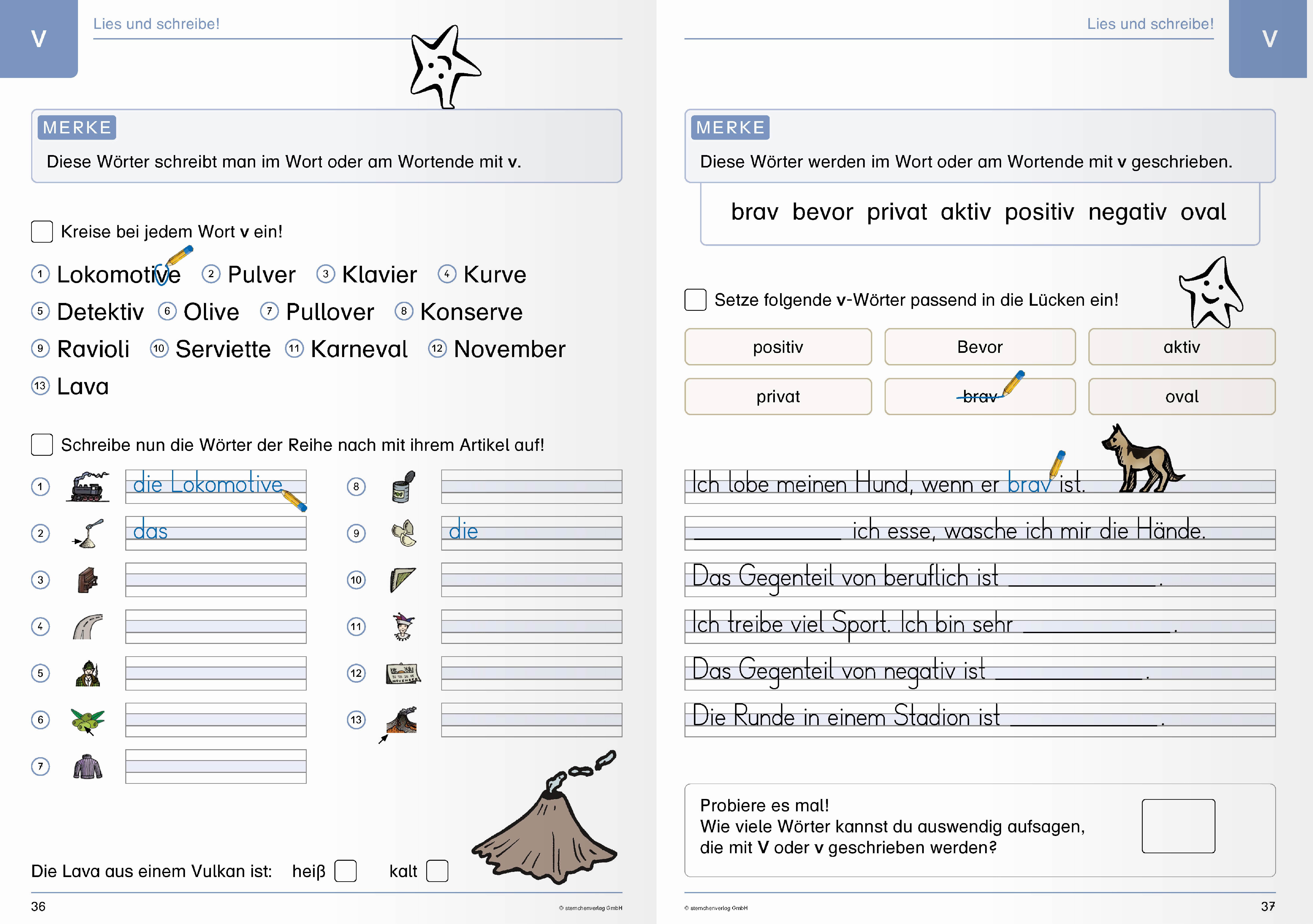 Themen: Wortendungen: • d/t • k/g • b/p • A-/a- Ä-/ä-Wörter • au- äu-Wörter • Eu-/eu-Wörter • V-/v-Wörter • Pf-/pf-Wörter Das Eulenheft "Ich kann rechtschreiben 1", geeignet für die 2. und 3. Klasse, beinhaltet motiviere...