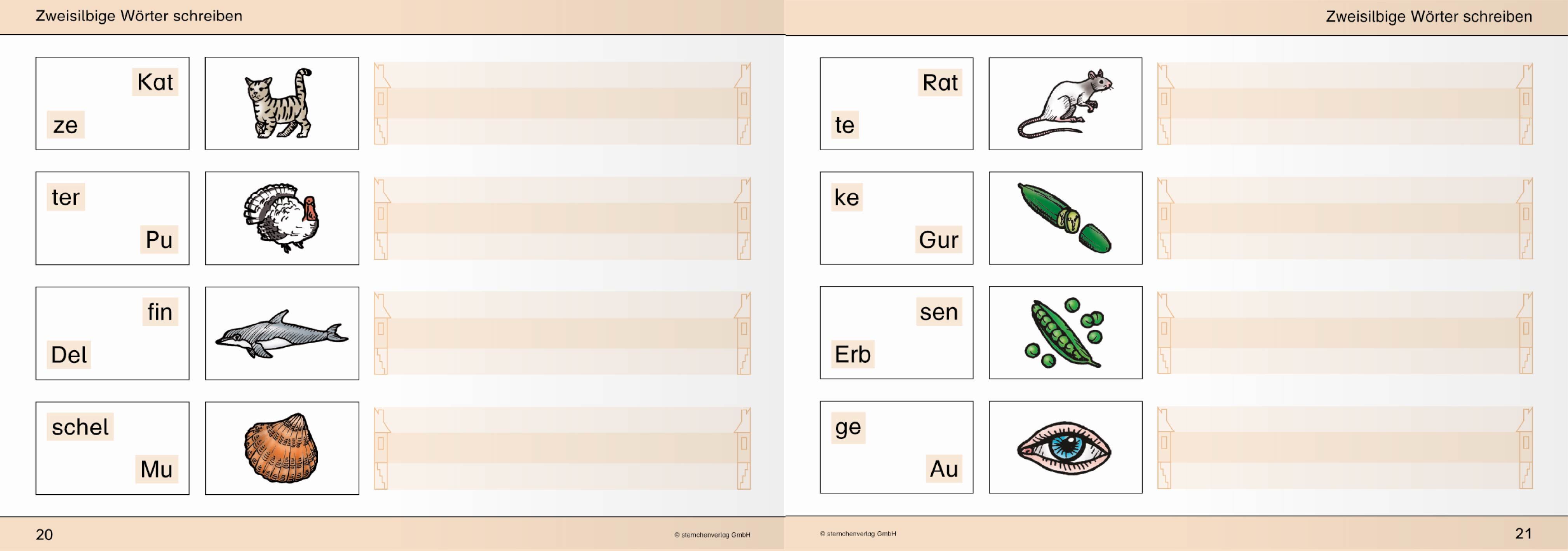 Im Schülerarbeitsheft "Ich kann schreiben Teil 2" geht es darum, die Kinder allmählich an die richtige Schreibweise verschiedener Wörter heranzuführen. Dabei sollen sie Wörter in ihre Laute zerlegen und richtig aufschreiben, Wörter in Silben zerlegen und richt...
