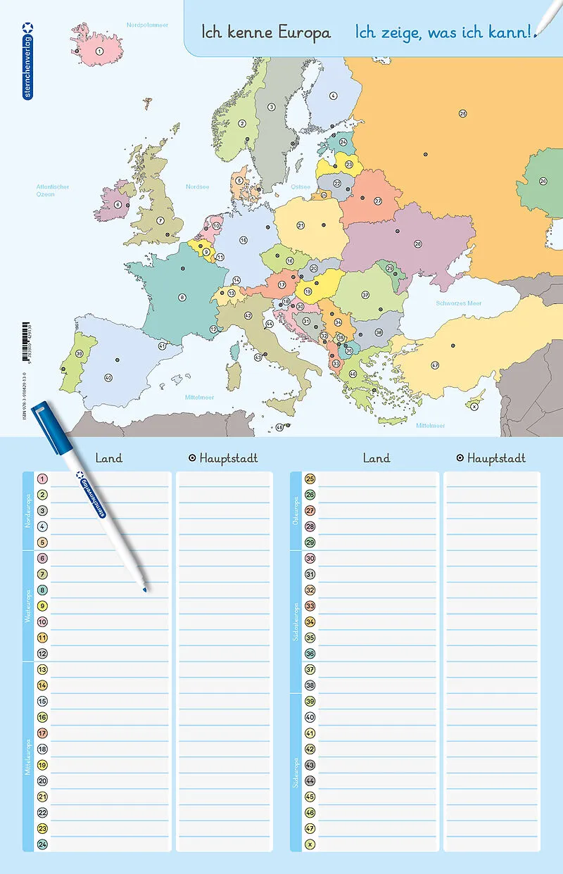 Ich kenne Europa - Länder und Hauptstädte - Lerntafel mit Stift
