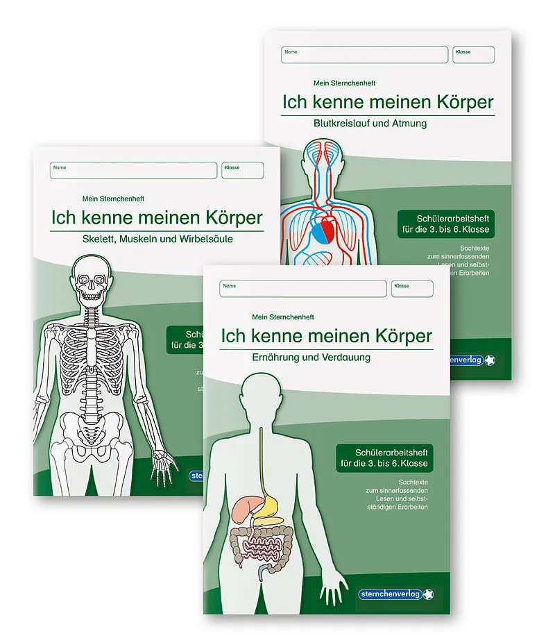 Ich kenne meinen Körper: 1. Skelett, Muskeln und Wirbelsäule - 2. Blutkreislauf und Atmung - 3. Ernährung und Verdauung - 3 Hefte im Set Ich kenne meinen Körper - Ernährung und Verdauung - ISBN 978-3-939293-36-1 Ich kenne meinen Körper - Blutkreislauf und Atmu...