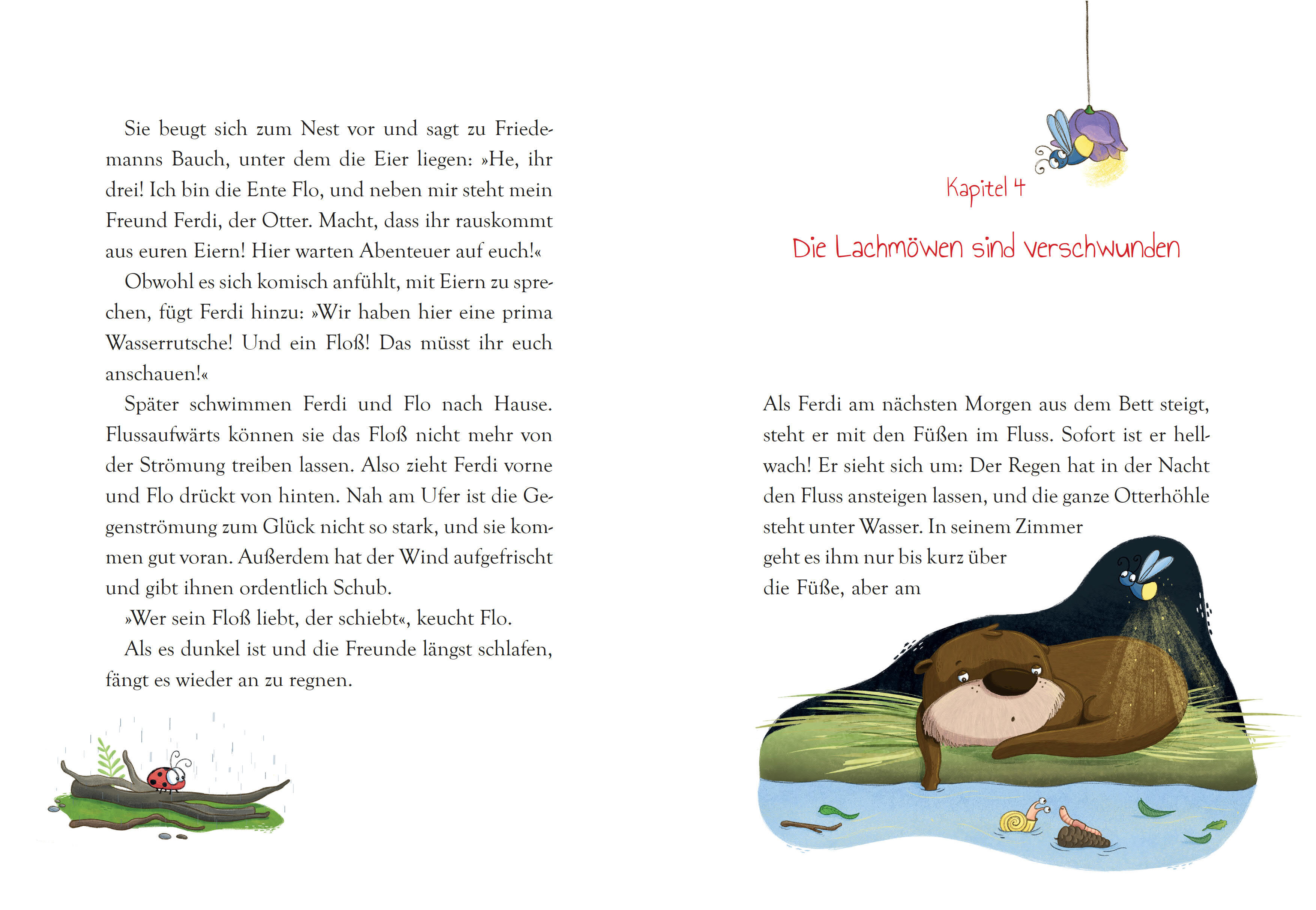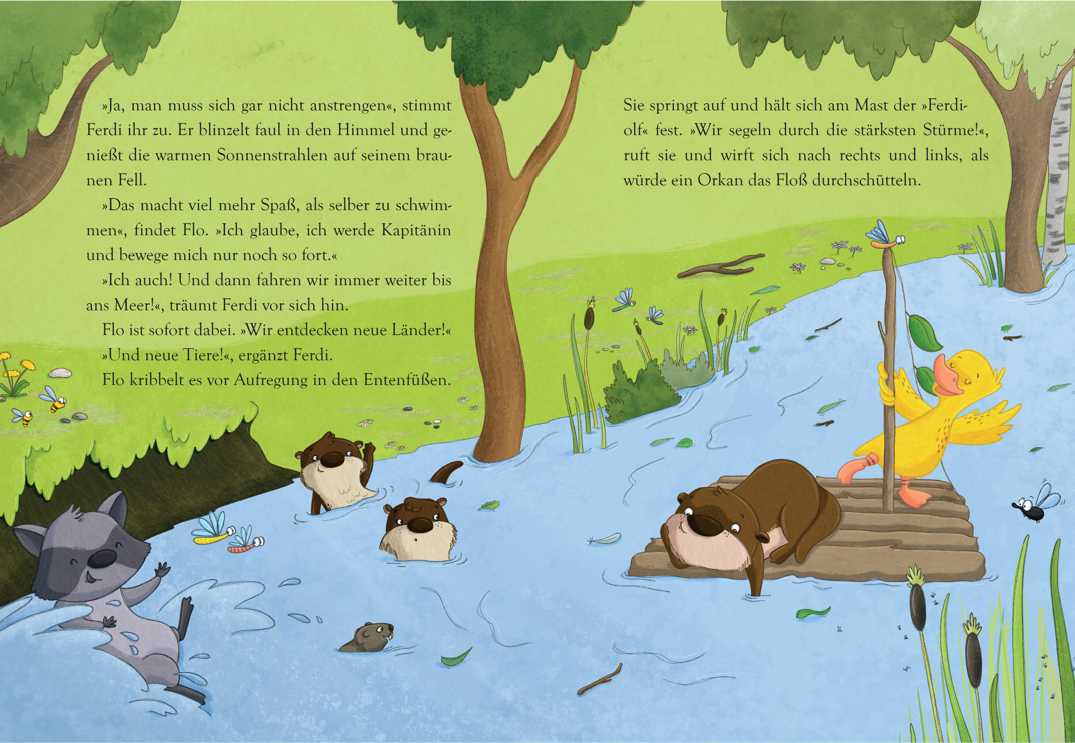 Es regnet! Das heißt: noch mehr Wasserspaß für Ferdi und Flo! Die beiden Freunde bauen sich ein Floß und jagen damit über den Fluss. Dabei lernen sie ein verliebtes Vogelpärchen kennen, das auf einer Sandbank seine allerersten Eier ausbrütet. Wie aufregend! A...