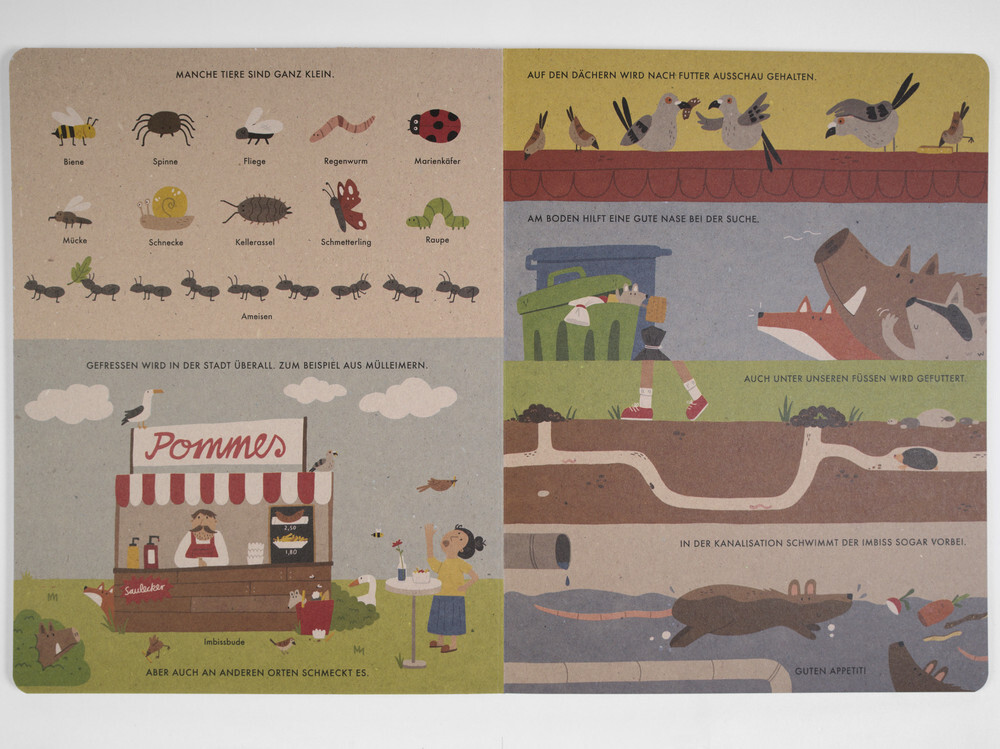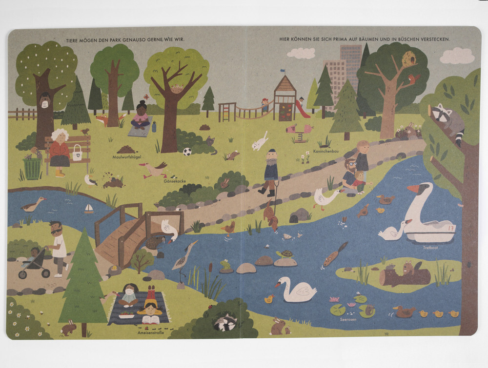 In unseren Gärten und Parks, in Hinterhöfen und auf Dachböden leben viele Wildtiere. Katrin Wiehle zeigt in diesem Wimmelbuch unter anderem, was der Marder in der schützenden Dunkelheit so treibt, wo das Wildschwein Futter findet und welche geheimen Wege die I...