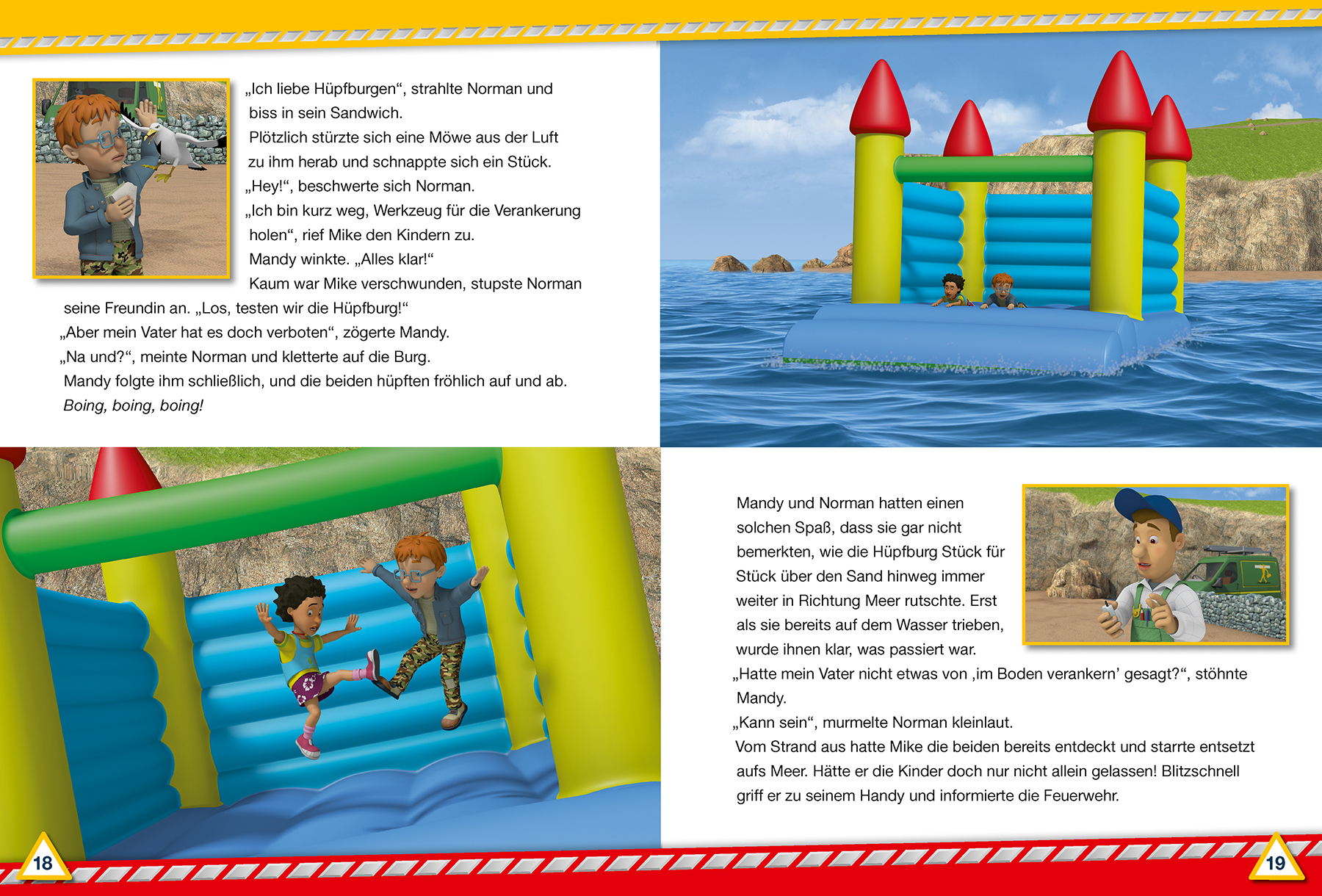 Die Kinder von Pontypandy halten Feuerwehrmann Sam und sein Team stets in Trab: Mal bleibt Norman mit einem Pferd im Schlammloch stecken, dann treibt er gemeinsam mit Mandy auf einer Hüpfburg aufs offene Meer hinaus. Schließlich geraten James, Sarah und ihre F...