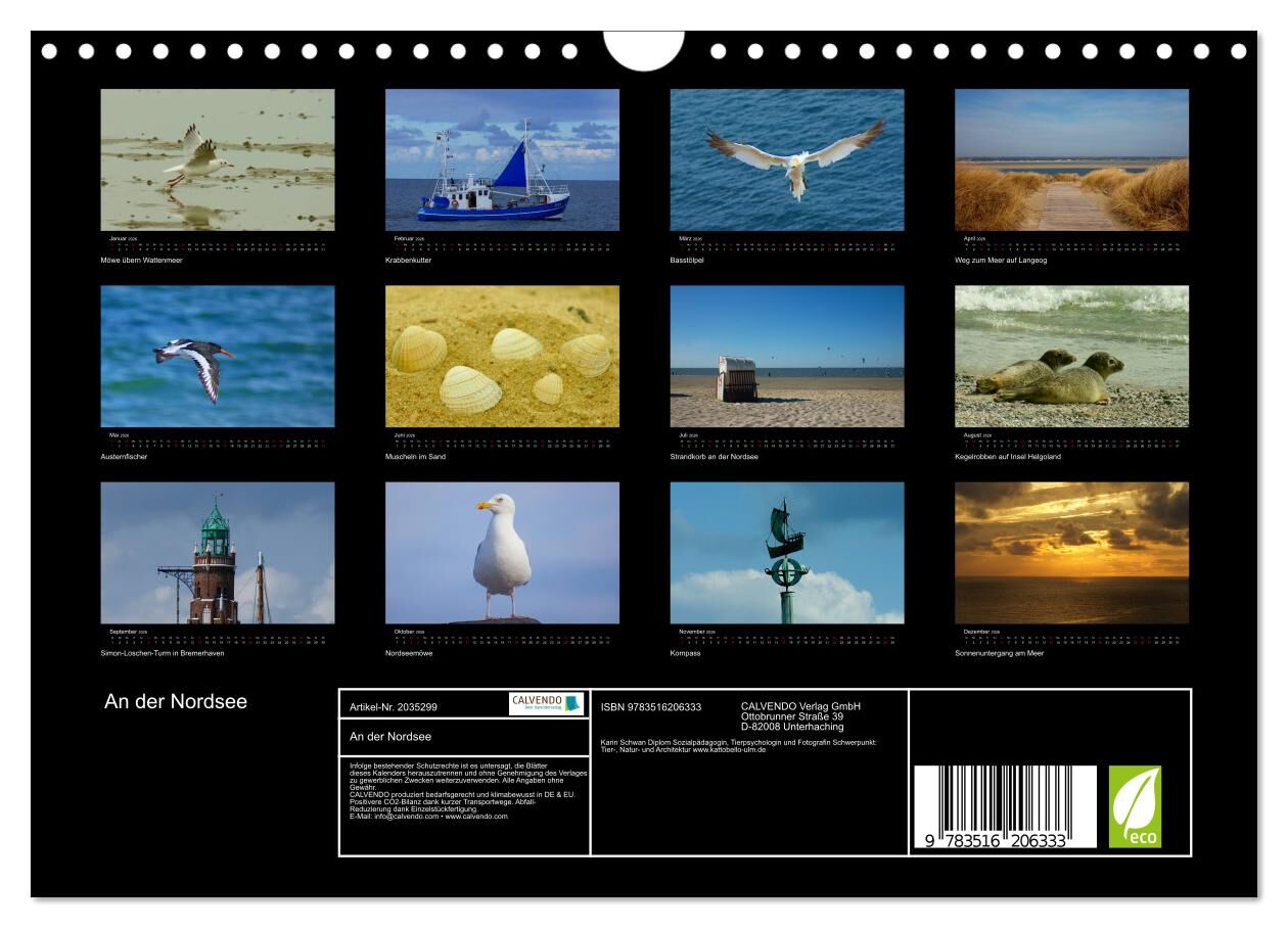 Dieser Kalender präsentiert die Welt der Nordsee mit all ihren tierischen Bewohnern, Landschaften, Architektur, Schiffen und Strände in all ihren Facetten.