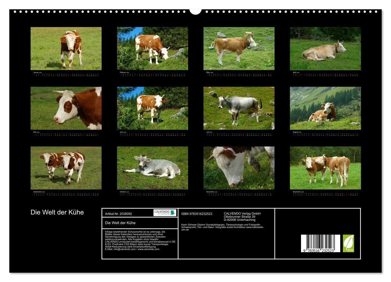 Die Welt der Kühe (hochwertiger Premium Wandkalender 2026 DIN A2 quer), Kunstdruck in Hochglanz