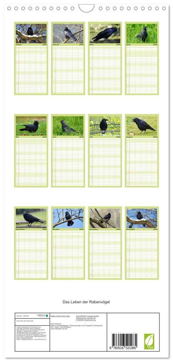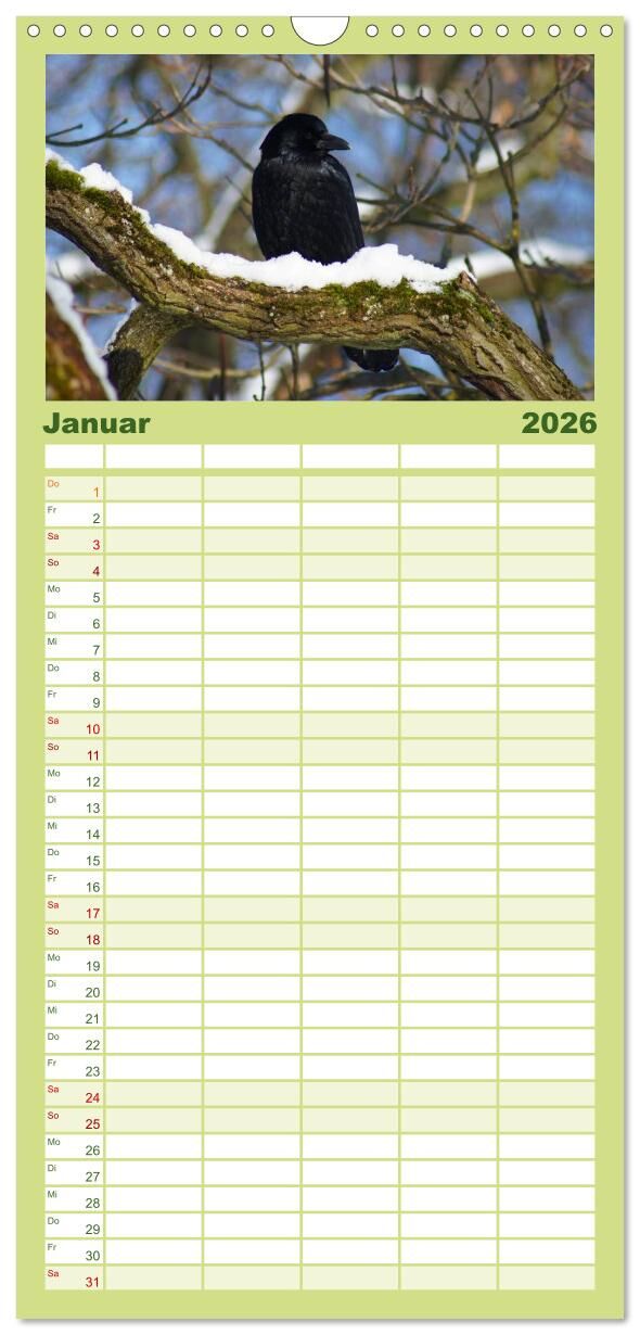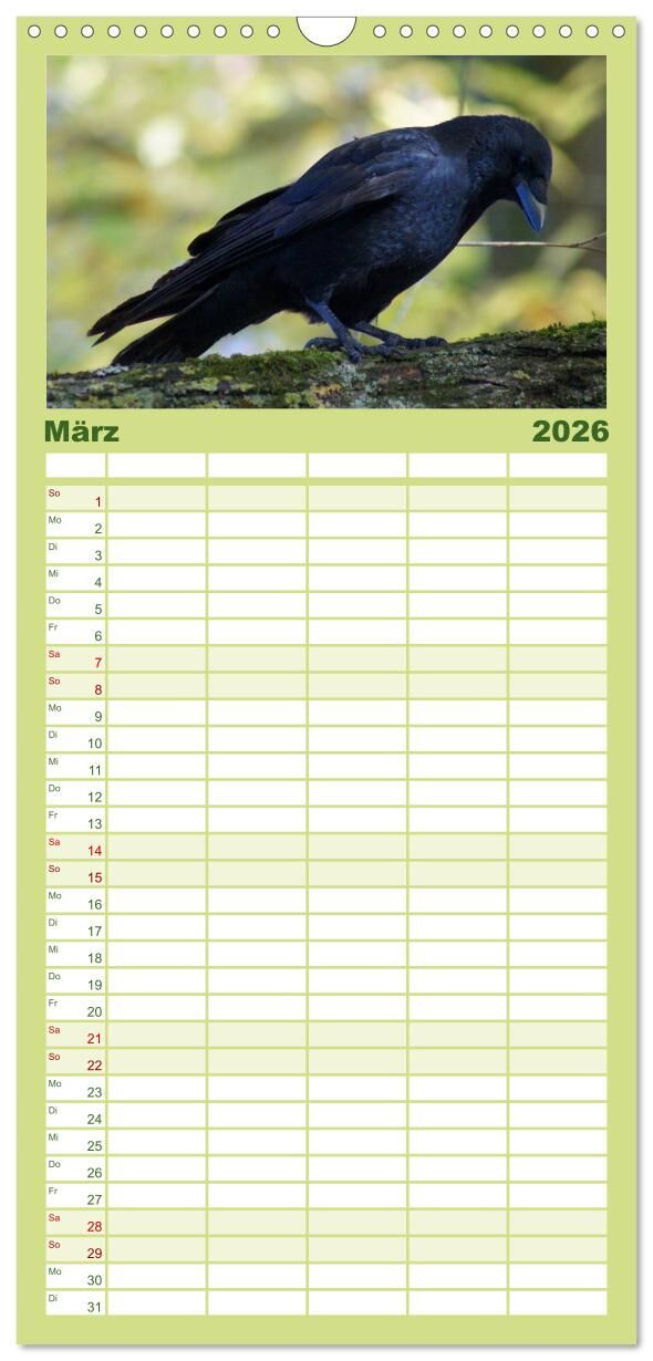 Familienplaner 2026 - Das Leben der Rabenvögel mit 5 Spalten (Wandkalender, 21 x 45 cm) CALVENDO