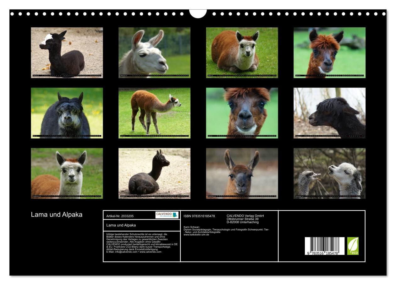 Lama und Alpaka (Wandkalender 2026 DIN A3 quer), CALVENDO Monatskalender
