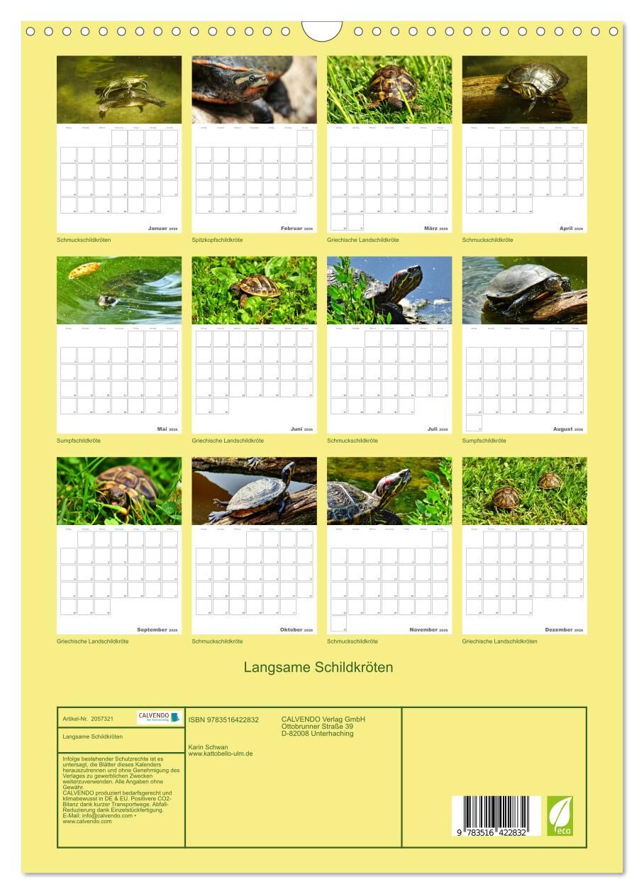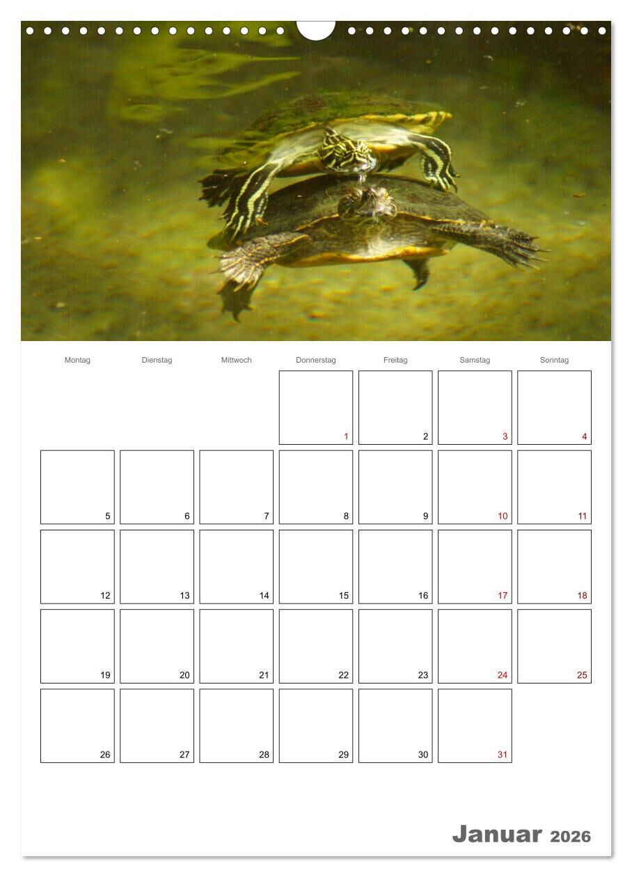 Schildkröten gehören zu Gruppe der Reptilien. Sie können sehr alt werden und es kommt sogar vor, dass sie ihren Besitzer überleben. Es gibt zahlreiche Schildkrötenarten, die entweder im Wasser oder auf dem Land leben. Dieser Kalender soll Ihnen diese einzigart...