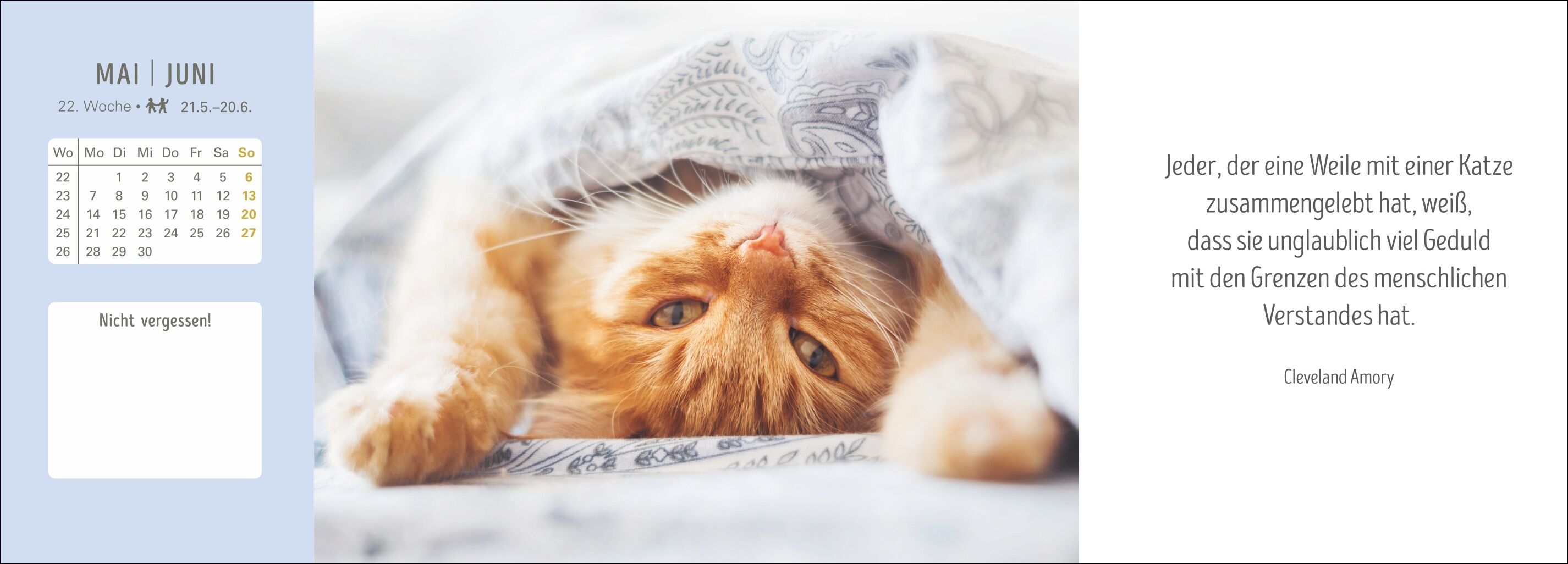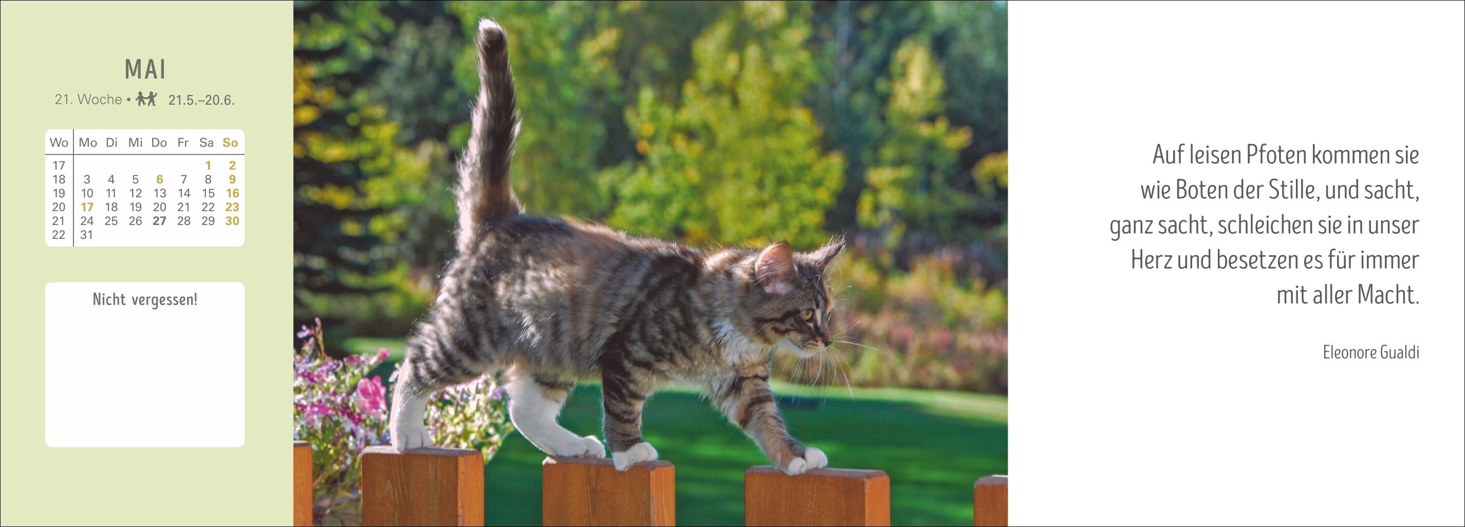 - Gut gelaunt in die Woche starten: Premium-Katzen-Kalender für den Schreibtisch mit hochwertigem Hardcover-Aufsteller aus starkem Karton - Abenteuerlustigen Stubentigern zuschauen: Wochenplaner mit 53 niedlichen Katzen-Fotos in höchster Qualität sowie Notizbe...