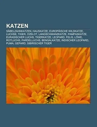 Quelle: Wikipedia. Seiten: 168. Kapitel: Säbelzahnkatzen, Hauskatze, Europäische Wildkatze, Luchse, Tiger, Ozelot, Langschwanzkatze, Pampaskatze, Eurasischer Luchs, Tigerkatze, Leopard, Felis, Löwe, Rotluchs, Pardelluchs, Bengalkatze, Indischer Leopard, Puma, ...Quelle: Wikipedia. Seiten: 168. Kapitel: Säbelzahnkatzen, Hauskatze, Europäische Wildkatze, Luchse, Tiger, Ozelot, Langschwanzkatze, Pampaskatze, Eurasischer Luchs, Tigerkatze, Leopard, Felis, Löwe, Rotluchs, Pardelluchs, Bengalkatze, Indischer Leopard, Puma, Gepard, Sibirischer Tiger, Schneeleopard, Rohrkatze, Kaspischer Tiger, Kanadischer Luchs, Karakal, Java-Tiger, Serval, Asiatische Goldkatze, Nebelparder, Sunda-Nebelparder, Jaguar, Sandkatze, Iriomote-Katze, Schwarzfußkatze, Jaguarundi, Königstiger, Höhlenlöwe, Liger, Amerikanische Geparden, Borneo-Goldkatze, Smilodon, Chilenische Waldkatze, Homotherium, Südchinesischer Tiger, Balitiger, Amerikanischer Löwe, Marmorkatze, Bergkatze, Megantereon, Indochinesischer Tiger, Berberlöwe, Sri-Lanka-Leopard, Eigentliche Großkatzen, Sumatra-Tiger, Flachkopfkatze, Afrikanische Goldkatze, Graukatze, Asiatischer Löwe, Malaysia-Tiger, Fischkatze, Amurleopard, Java-Leopard, Kleinkatzen, Dinofelis, Pardofelis, Mosbacher Löwe, Rostkatze, Kleinfleckkatze, Manul, Trinil-Tiger, Asiatische Goldkatzen, Falbkatze, Kaplöwe, Paramachairodus, Barbourofelidae, Xenosmilus, Pardelkatzen, Berberleopard, Pumas, Altkatzen, Metailurini, Asiatische Wildkatze, Nimravides, Asia-Afrika-Löwe. Auszug: Die Hauskatze (Felis silvestris catus) ist ein fleischfressendes, zu den Katzen gehörendes Säugetier. Sie ist ein seit mindestens etwa 9500 Jahren vom Menschen gehaltenes Haustier. Sie zählt zu den beliebtesten Heimtieren. Von Züchtern wird der Begriff Hauskatze für Katzen mit einer breiten Vielfalt von Wuchstypen und Fellfarben verwendet. Sie stehen dann den Rassekatzen gegenüber, die durch mehrjährige Züchtung entstanden und dem jeweiligen Züchtungsstandard entsprechen, der sich von Rasse zu Rasse deutlich unterscheidet. Die beiden Begriffe umfassen zusammen alle Katzen, die in mehr oder weniger direktem Kontakt mit dem Menschen leben und daher als domestiziert gelten. Als Heim- oder Haustier kommt die Hauskatze weltweit in allen vom Menschen besiedelten Gebieten vor, kann aber als wild oder verwildert lebendes Tier nur in klimatisch warmen oder gemäßigten Zonen unabhängig von subsidiären menschlichen Einflüssen leben. Sie gilt als Kulturfolger. Auch in den geographisch isolierten Lebensräumen Australiens und Neuseelands, in die sie durch den Menschen eingebracht wurde, konnte sie sich verhältnismäßig schnell anpassen, beeinflusst dort jedoch zusammen mit einer Vielzahl anderer Neozoen die einzigartigen Ökosysteme. Zwar liegen der Wissenschaft bis heute noch keine verwertbaren Daten über die Kausalitäten oder das quantitative oder qualitative Ausmaß der vermuteten Schäden vor, dennoch muss davon ausgegangen werden, dass die Verbreitung verwilderter Hauskatzen zu einer Verdrängung, Bestandsgefährdung und vermutlich auch zum Aussterben einiger der endemischen Tierarten geführt hat. Die Merkmale der Hauskatze schwanken je nach Verbreitungsgebiet. Bei den gezüchteten Formen sind sie von den Rassestandards abhängig, bei den kulturfolgenden Hauskatzen unterliegen sie dem jeweiligen Selektionsdruck, der von den natürlichen Umweltbedingungen abhängt. Hauskatzen sind im Durchschnitt etwa fünfzig Zentimeter lang und vier Kilogramm schwer. In Verbreitungsgebieten mit kältere