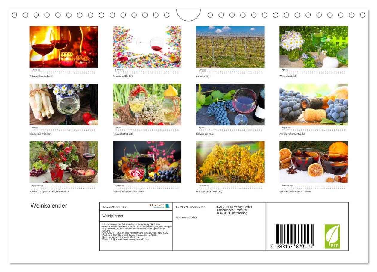 Deuschland ist ein Weinland. Dieser Kalender richtet sich an Winzer, Weinbauern und Weinliebhaber. Er beinhaltet wunderschöne Aufnahmen rund um das Thema Wein.
