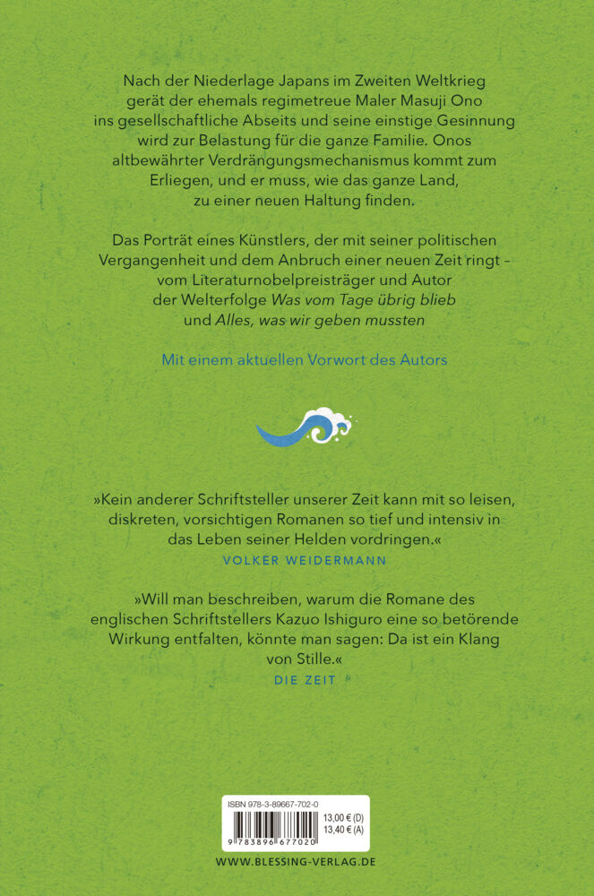 In den 1930er-Jahren hat der Maler Masuji Ono seine Kunst in den Dienst der japanischen Expansionspolitik gestellt. Jetzt, nach dem Krieg, ist sein damaliger Patriotismus anrüchig geworden, und als seine Tochter heiraten will, wird seine politische Vergangenhe...
