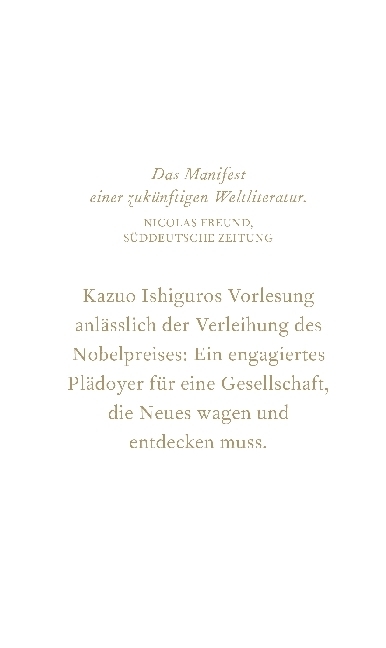 In seiner vielgelobten Nobelpreisrede zeigt uns Kazuo Ishiguro eindrücklich verschiedene Stationen seiner Werdung als Schriftsteller. Er spricht von seinem Verhältnis zu Japan und über die unterschiedlichsten Einflüsse aus Literatur, Musik und Film auf sein De...