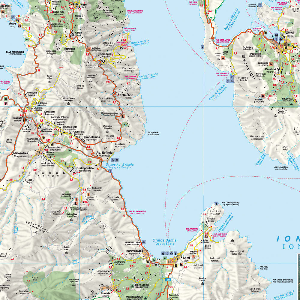 Mit der Straßenkarte Kefalonia im Maßstab 1:50.000 finden sich Urlauber die mit Auto, Motorrad oder Wohnwagen unterwegs sind bestens zurecht. Das weit verzweigte Straßennetz ist exakt abgebildet, Entfernungen und viele Ausflugsziele sind in der Karte eingezeic...