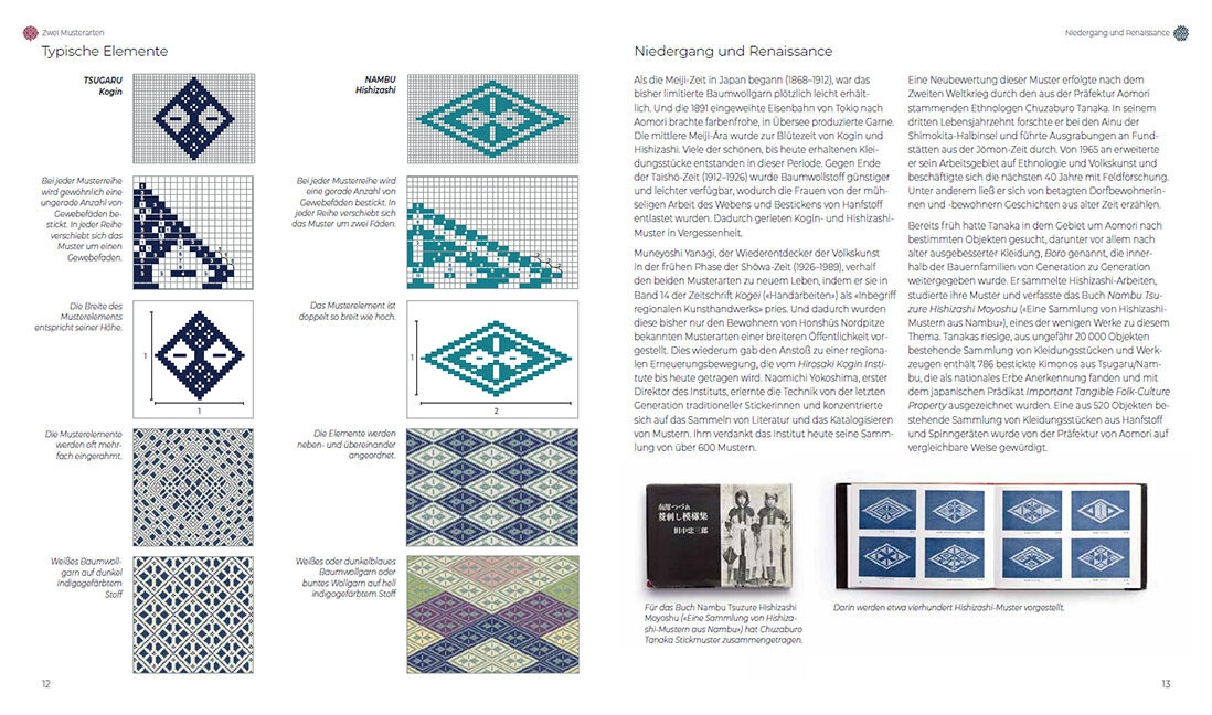 Die Welt des japanischen Stickens entdecken. Zwei traditionelle japanische Muster in zeitgenössischer Umgebung: Kogin und Hishizashi. Sashiko-Stickgrundlagen, Nähanleitungen, Mustervorlagen. Japanisches Textildesign, ästhetisch fotografiert. Die Ästhetik von j...