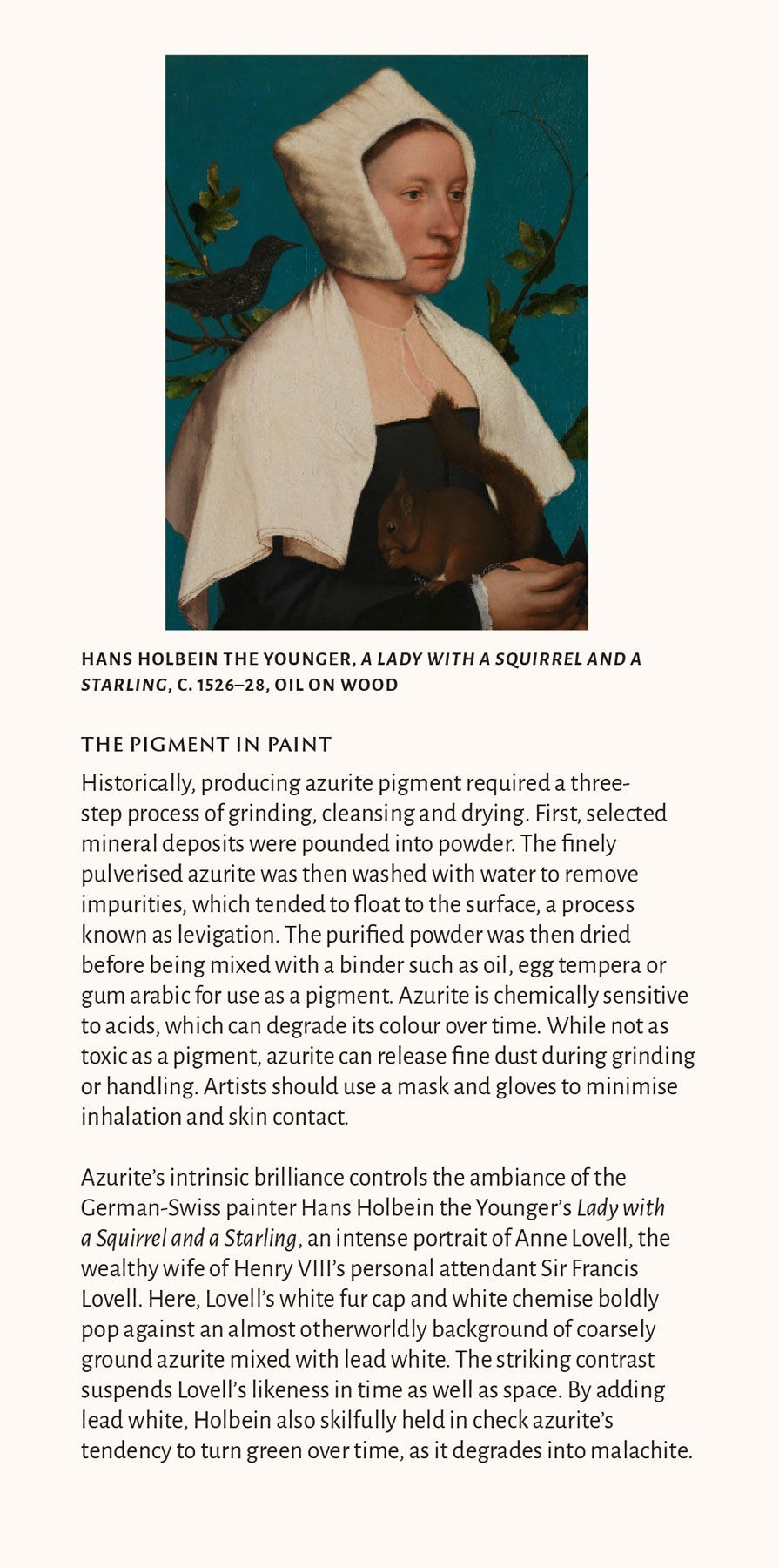 Historische Kunsttechniken: Eine Farbe sagt mehr als tausend Worte Die Geschichte der Farbe ist faszinierend, denn sie entführt uns ebenso in vergangene Zeiten wie die mit ihr angefertigten Gemälde vieler Generationen von Künstlern. Kulturjournalist Kelly Grov...
