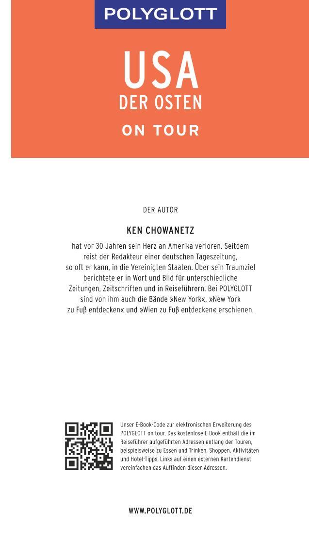 Persönlich & mittendrin! Entspanntes und unabhängiges Reisen mit dem Reiseführer POLYGLOTT on tour USA Der Osten, der Sie direkt ins Leben der Locals eintauchen lässt. Der Autor Ken Chowanetz führt in 16 abwechslungsreichen Touren durch den Osten der USA. ...