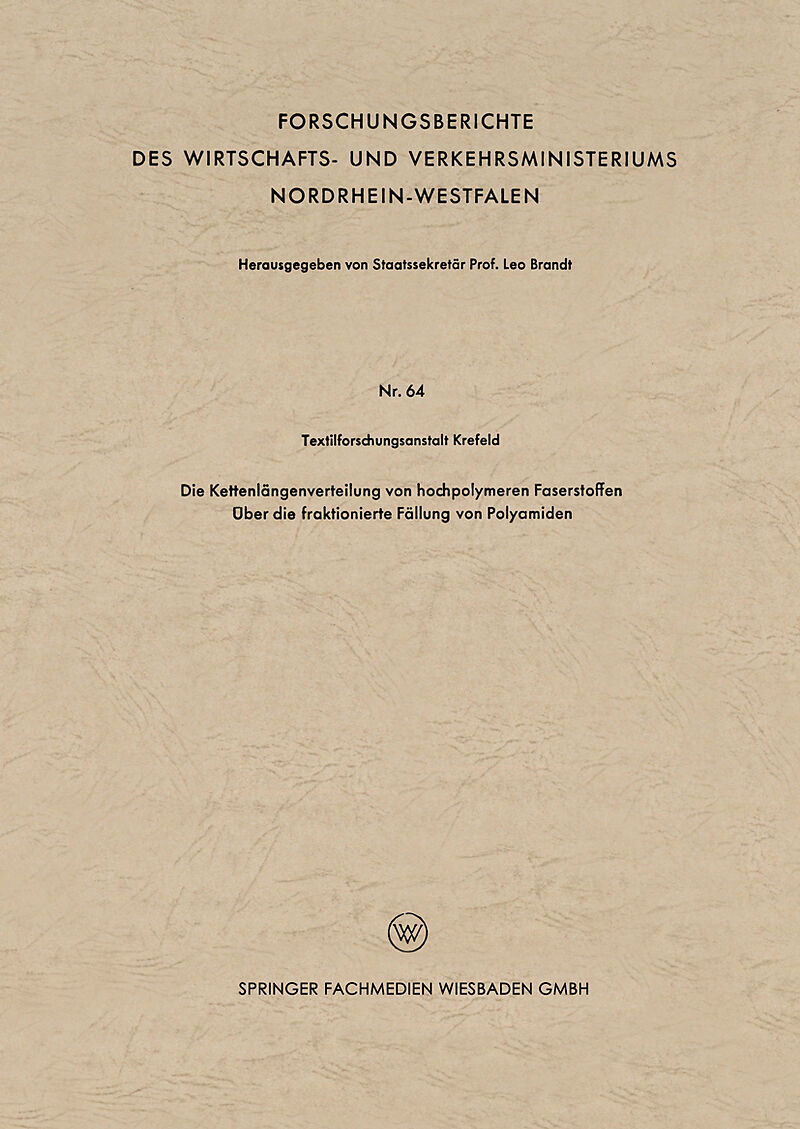 Inhalt Gliederung.- I. Einleitung.- II. Die experimentelle Durchführung der fraktionierten Fällung von Polyamiden.- a) Die Methode der fraktionierten Fällung.- b) Lösungs- und Fällungsmittel.- c) Die Durchführung der Fraktionierung.- d) Die Messung des Polymer...