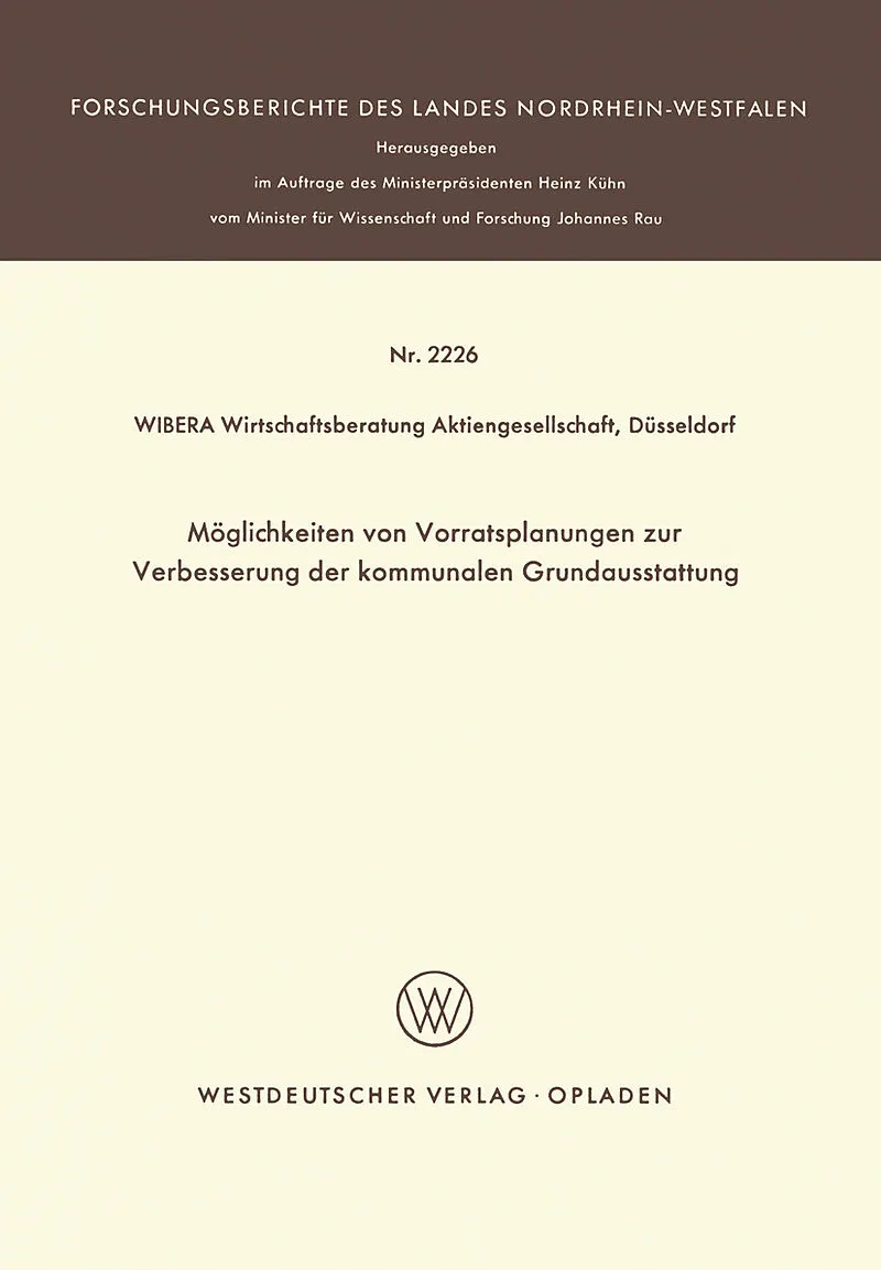 1. 1 Der Auf trag Auf Grund von Anregungen der "Standigen interministeriellen Arbeitsgruppe zur Koordinierung von MaBnahmen zur Strukturverbesserung" und eines Antrages der WIBERA AG yom 10. Juli 1968 beauftragte der Herr Ministerprasident des Landes...Klappentext