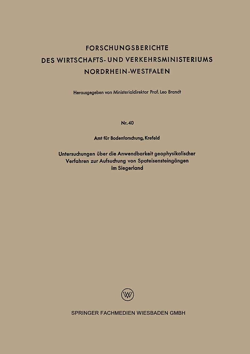 Untersuchungen über die Anwendbarkeit geophysikalischer Verfahren zur Aufsuchung von Spateisensteingängen im Siegerland