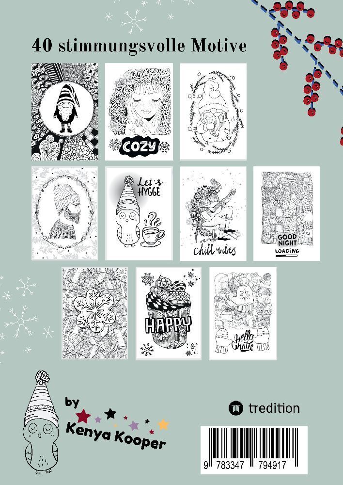 Tauche ein in die Winterstimmung einer besonderen Malbuch im trendigen Cozy and Comfy Design. Wenn du eine Sammlung von handillustrierten, gemütlichen Wintermotiven suchst, ist dieses Malbuch genau richtig für dich! Mit diesem Malbuch hast du eine wunderbare B...
