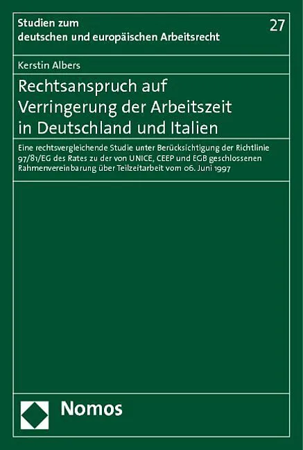 Teilzeitarbeit in Deutschland und Italien Rechtsanspruch als Erfolgsmodell? Mit dem im Jahr 2001 eingeführten Anspruch auf Verringerung der Arbeitszeit (§ 8 TzBfG) löste der deutsche Gesetzgeber teilweise harsche Kritik aus und wollte doch (nur) die ablehnende...