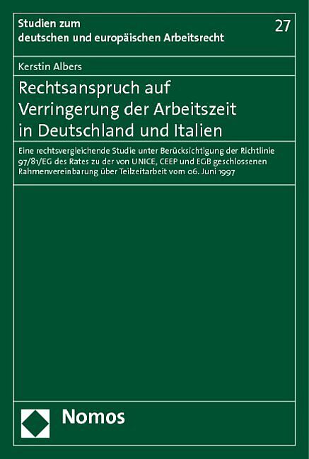 Teilzeitarbeit in Deutschland und Italien Rechtsanspruch als Erfolgsmodell? Mit dem im Jahr 2001 eingeführten Anspruch auf Verringerung der Arbeitszeit (§ 8 TzBfG) löste der deutsche Gesetzgeber teilweise harsche Kritik aus und wollte doch (nur) die ablehnende...