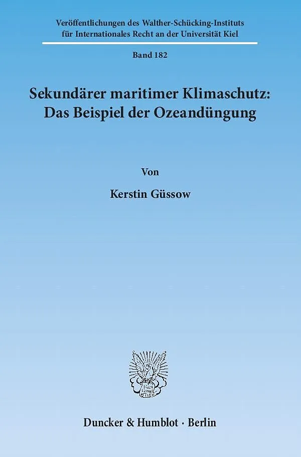 Kerstin Güssow setzt sich mit dem Climate Engineering als Maßnahme des sekundären Klimaschutzes auseinander. Sie analysiert am Beispiel der Ozeandüngung völkerrechtliche Normen auf ihre Anwendbarkeit und Eignung zur Bewertung dieser Methode. Das Völkerrecht bi...