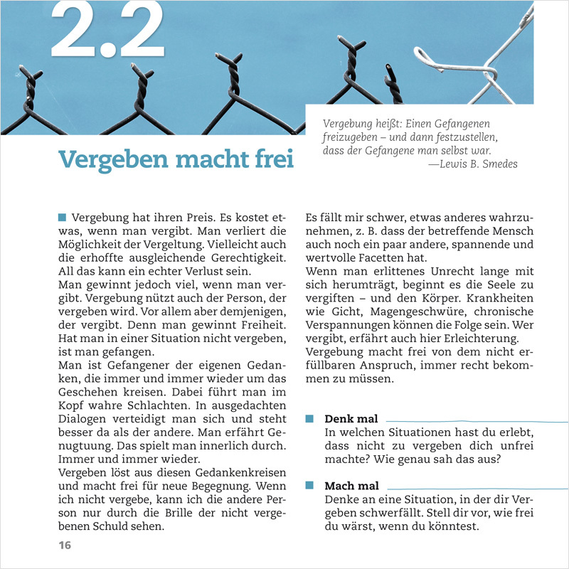 Jeder kennt Situationen, in denen er von anderen Menschen verletzt, verraten oder im Stich gelassen wurde. Das Erlebte nimmt innerlich gefangen und der damit verbundene Schmerz hält oft lange an. Vergebung ist ein wirksamer Weg, mit erlittenem Unrecht umzugehe...