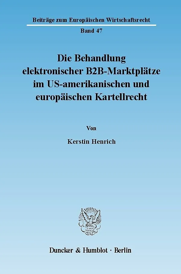 Die Untersuchung ist der Frage gewidmet, ob von elektronischen B2B-Handelsplattformen Gefahren für den Wettbewerb ausgehen könnten. Ihr Schwerpunkt liegt auf der kartellrechtlichen Betrachtung von Marktplätzen, die von führenden Unternehmen einer Branche gegrü...