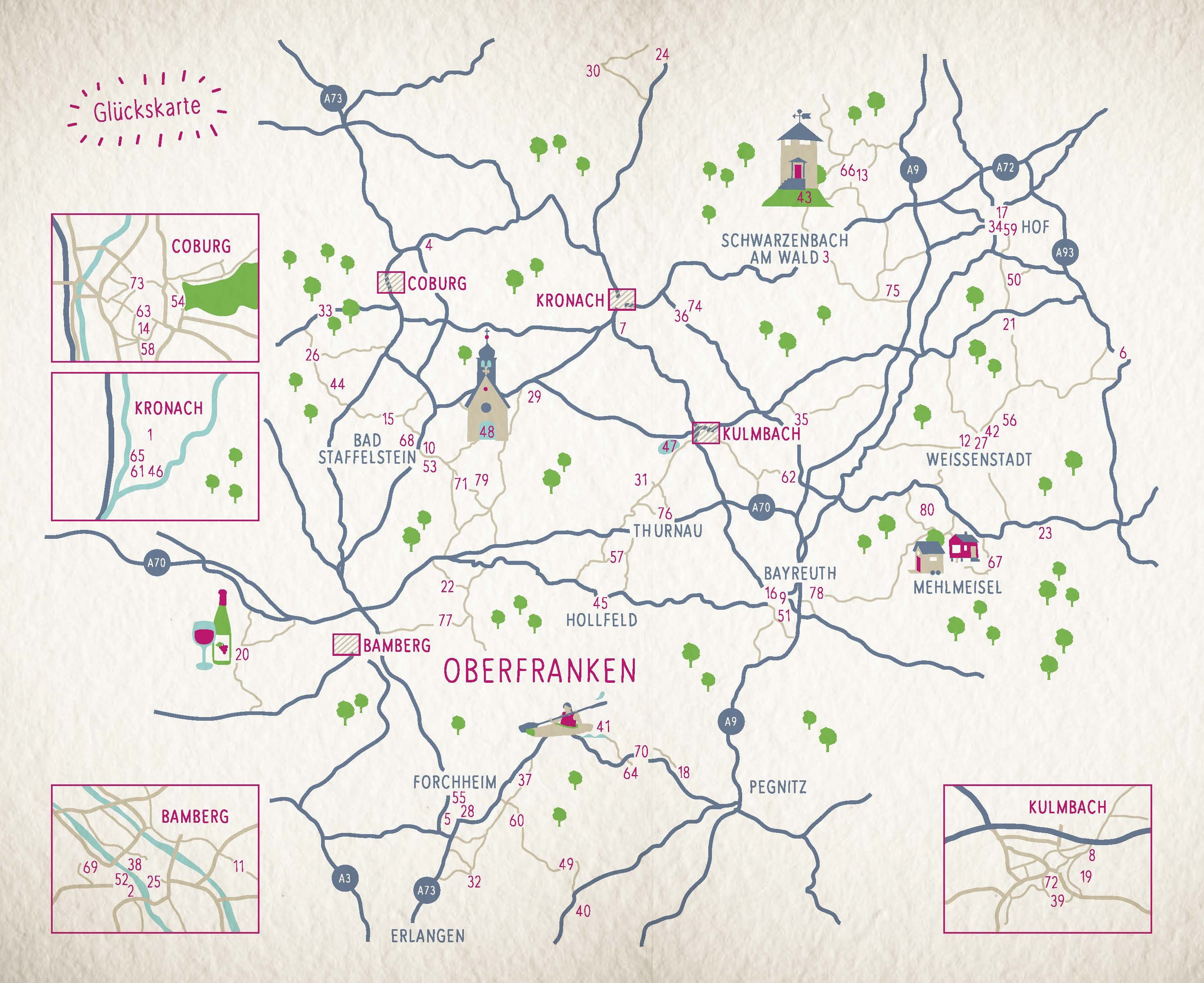 Ein Potpourri voller Glücksorte, das ist Oberfranken. Hier finden sich entzückende Cafés, liebenswerte Läden, mächtige Burgen und spannende Museen, umrahmt von einer mehr als eindrucksvollen Natur. Wer immer schon einmal wissen wollte, was Oberfranken und Ente...