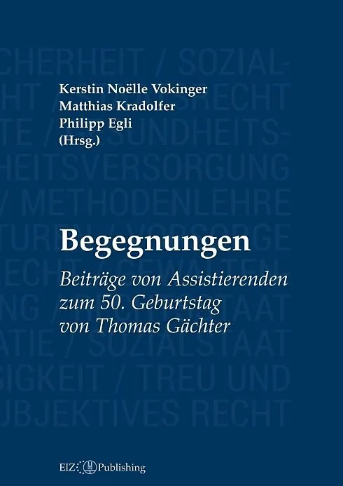 Das Buch «Begegnungen» erscheint zum 50. Geburtstag von Thomas Gächter. Es enthält Beiträge ehemaliger Assistentinnen und Assistenten, die am Lehrstuhl von Thomas Gächter persönliche wie wissenschaftliche Erlebnisse sammeln durften. Sozialversicherungsrecht, G...