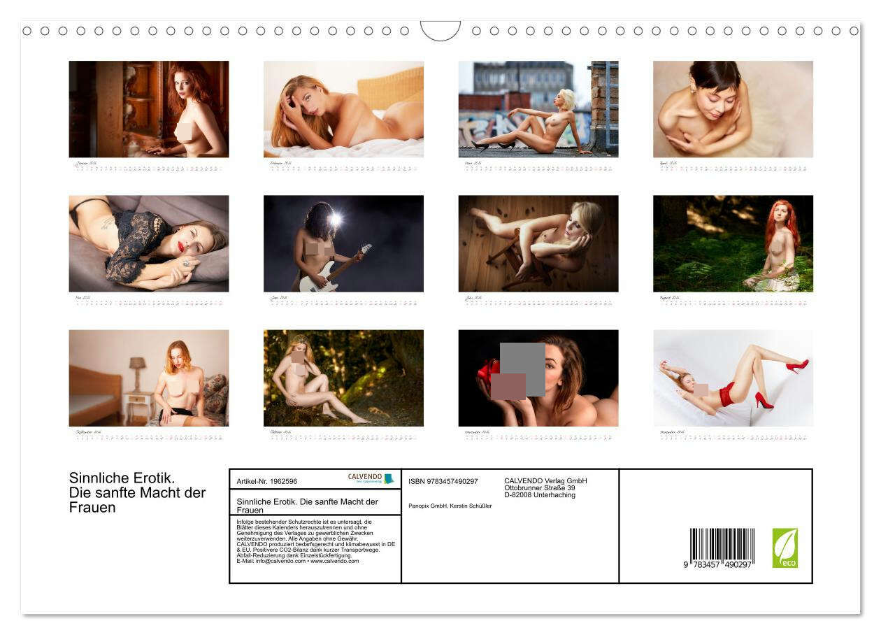 Der ästhetische Erotikkalender feiert den Frauenkörper und die weibliche Sinnlichkeit. Jeder Monat überrascht mit dem Foto einer anderen Schönheit in verführerischer Pose, von der Fotografin gekonnt, elegant und stilvoll als Halb- oder klassischer Vollakt in S...